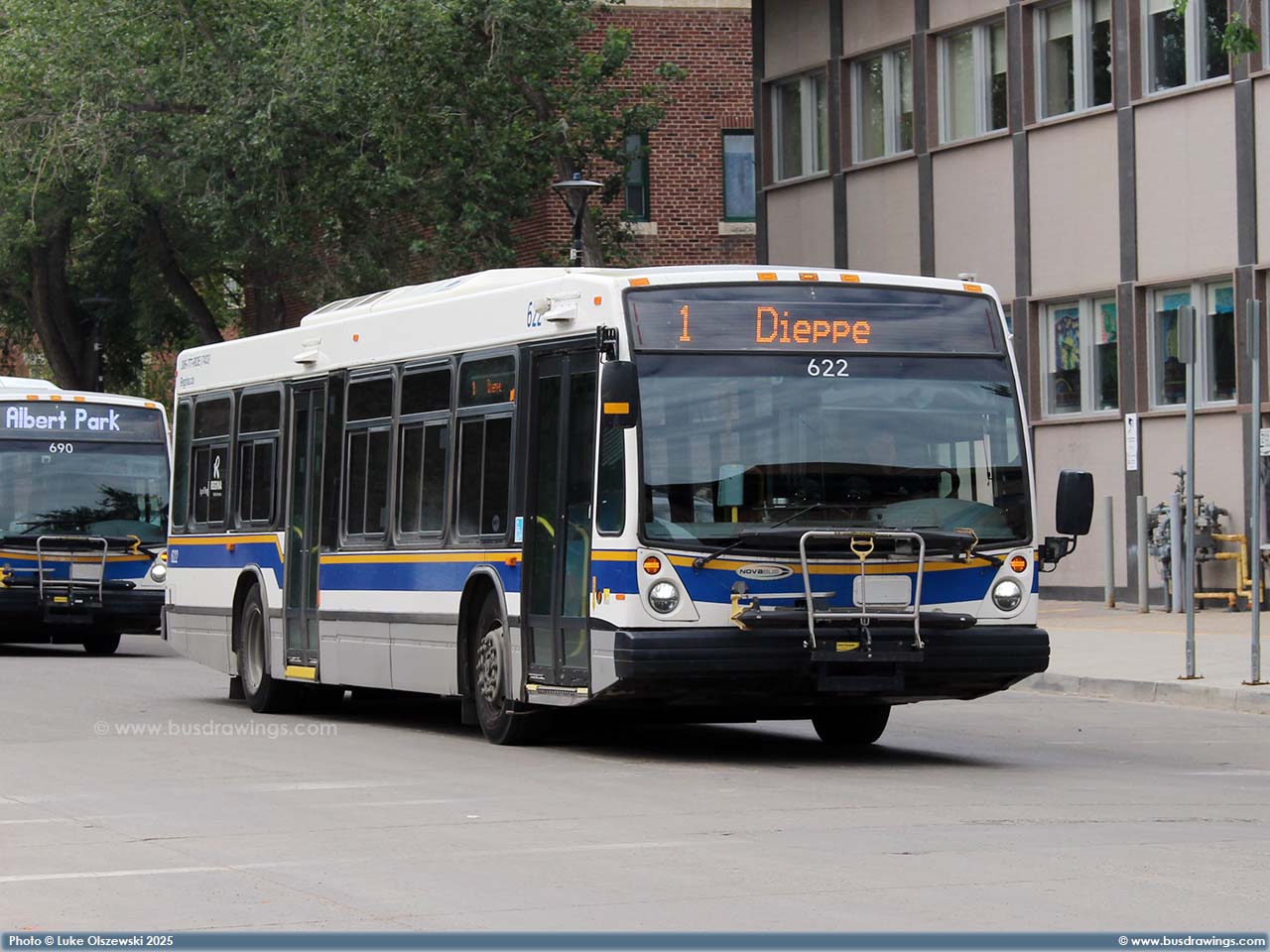 #622 is seen in the downtown core on July 29, 2025. Photo captured by Luke Olszewski. | |