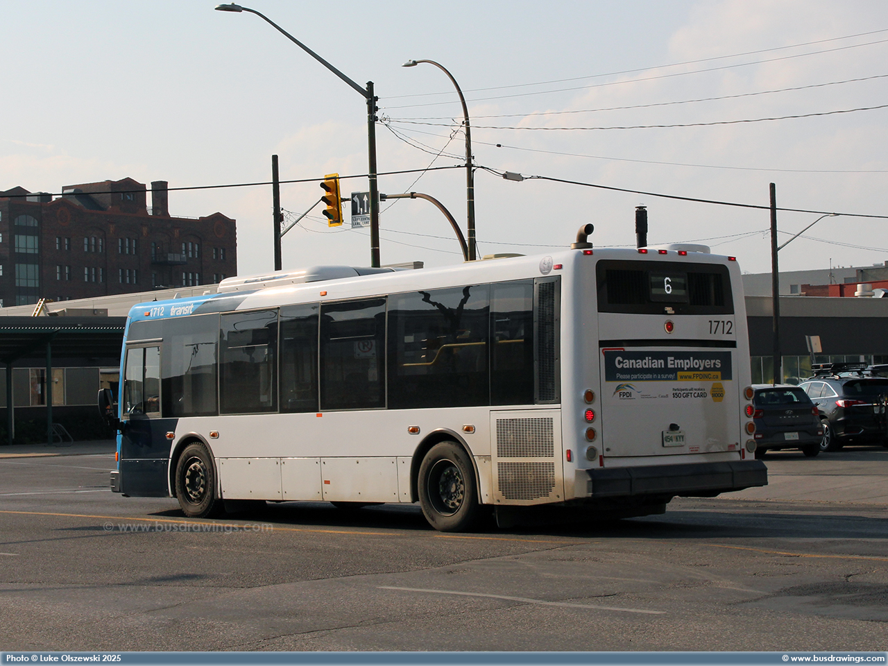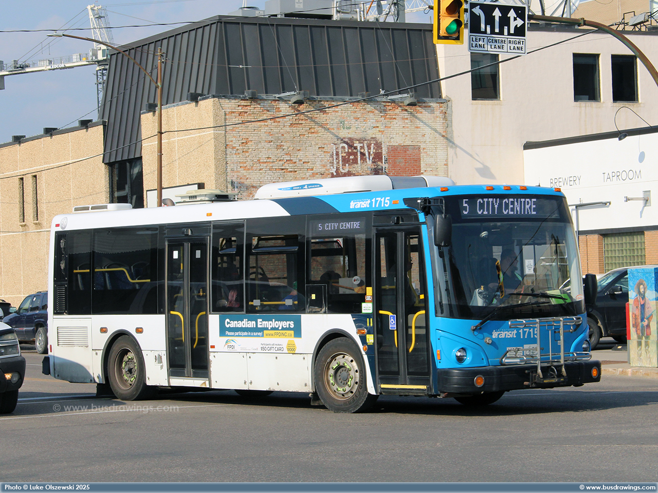 #1715 in the downtown core while working a route 5 on July 27, 2025. Photo captured by Luke Olszewski. | |