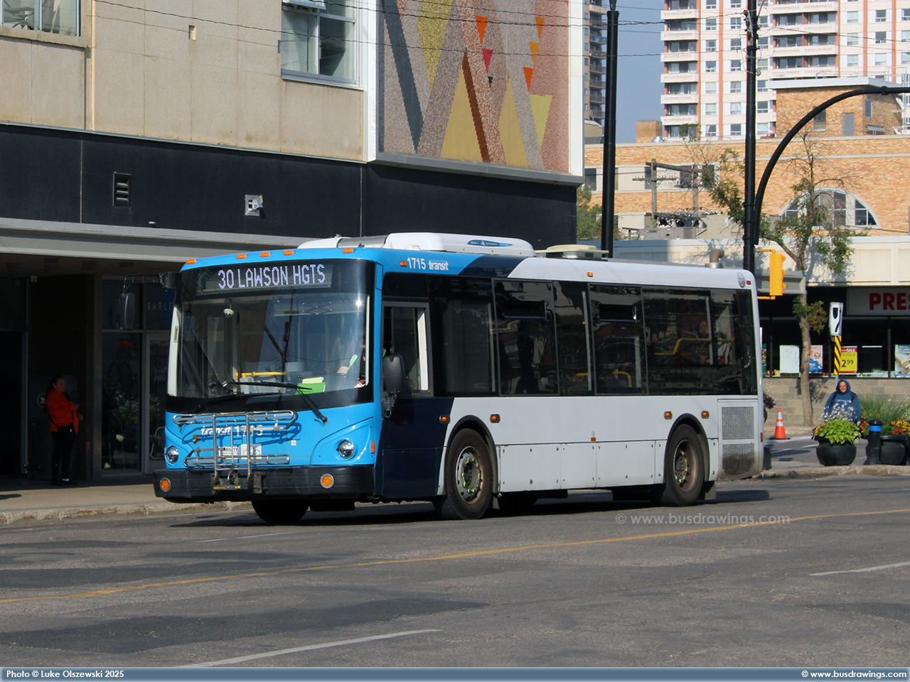 #1715 in the downtown core while working a route 30 on July 27, 2025. Photo captured by Luke Olszewski. | |
