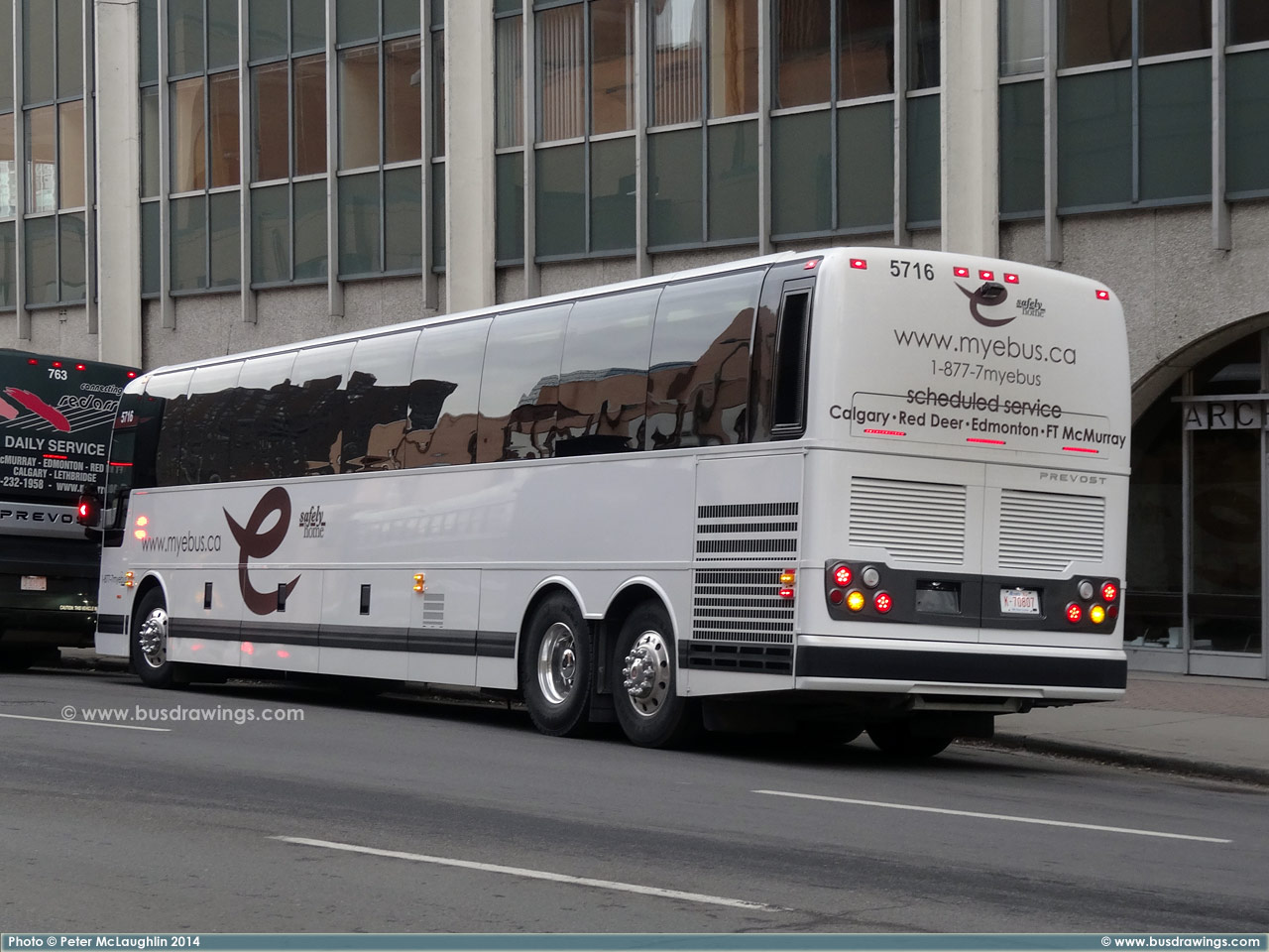 #5716 at the downtown Fording building stop in Calgary on December 19, 2014. Photo captured by Peter McLaughlin. | |
