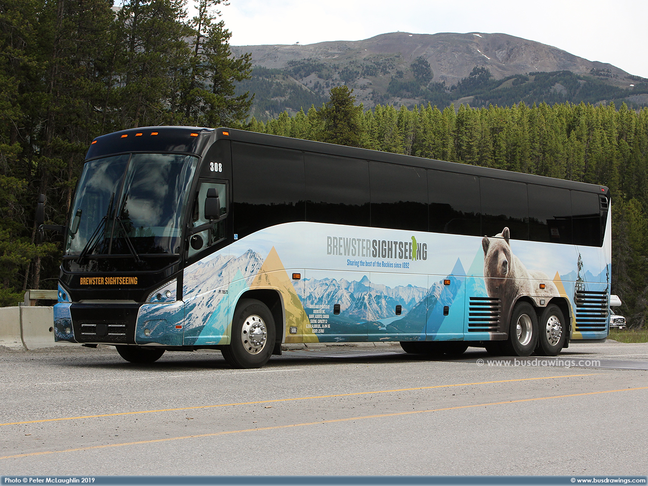 #308 arriving at the Lake Louise Village on July 11, 2019. Photo captured by Peter McLaughlin. | |