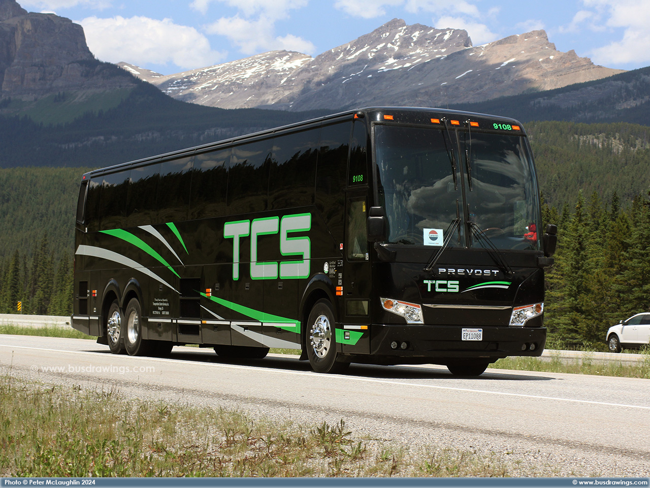 #9108 is seen on the Trans-Canada Highway #1 somewhere between the Village of Lake Louise and the Town of Banff on July 10, 2024. Photo captured by Peter McLaughlin. | |