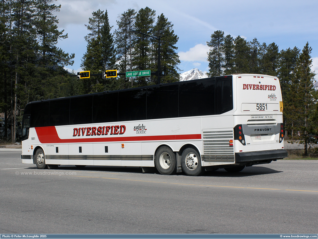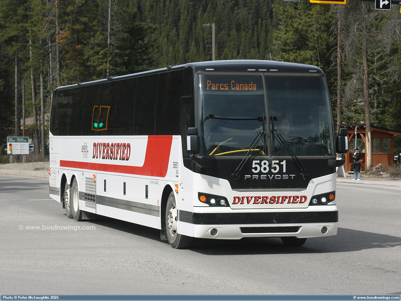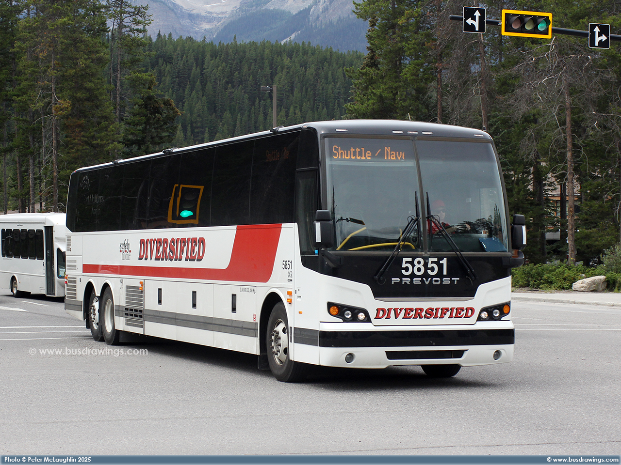 #5851 is seen on Lake Louise Drive near Village Road heading from Lake Louise to the Lake Louise Over-Flow Parking lot up by the Lake Louise Ski Resport & Summer Gondola on May 22, 2025. Photo captured by Peter McLaughlin. | |