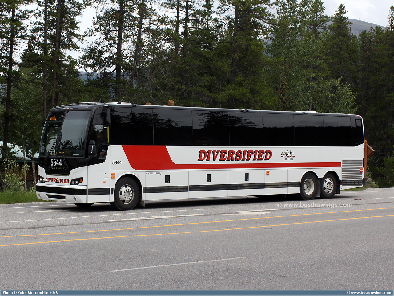 #5844 is seen on Lake Louise Drive near Village Road heading to Lake Louise from the Lake Louise Over-Flow Parking lot on August 2, 2025. Photo captured by Peter McLaughlin. | |