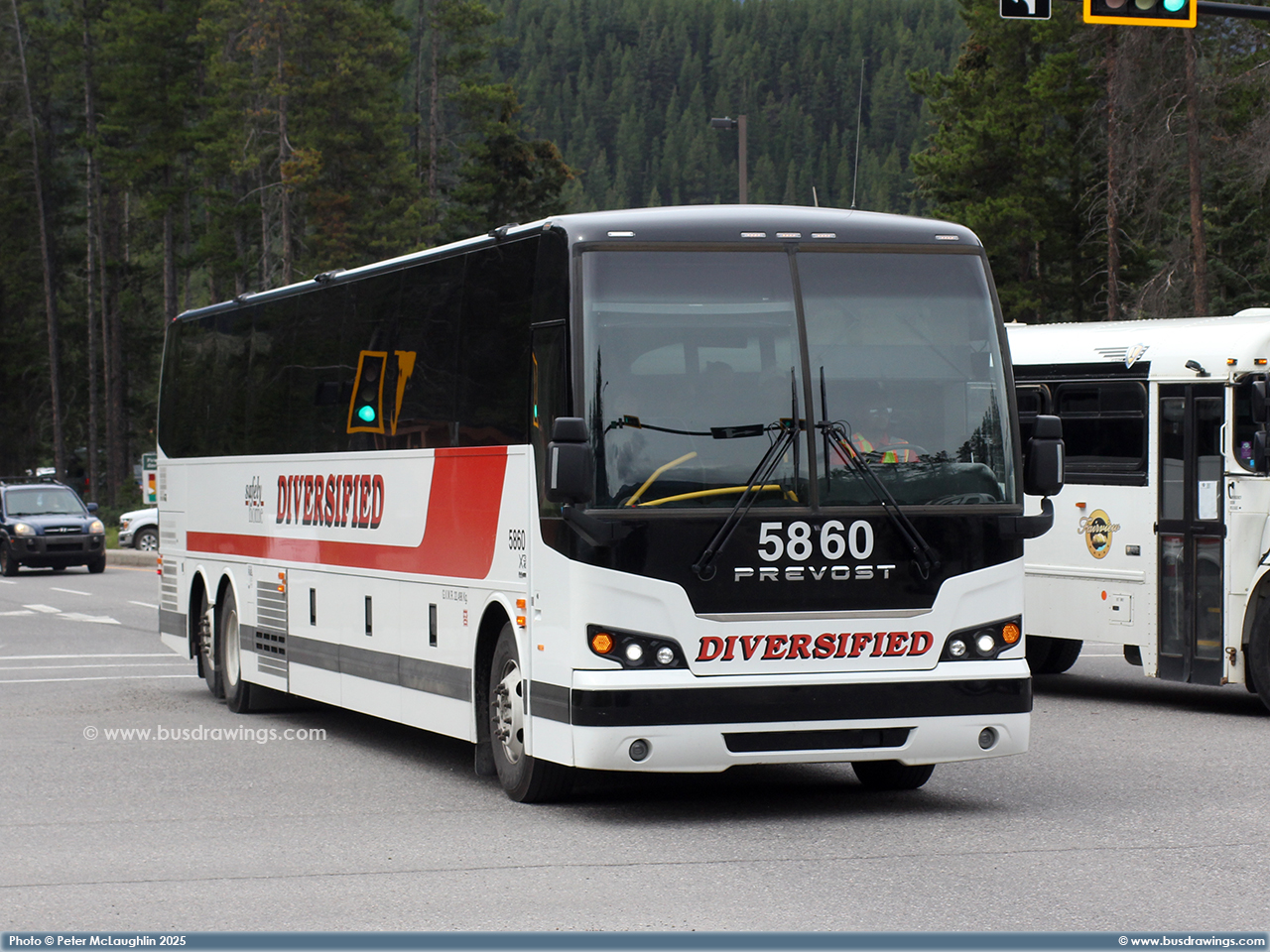 #5860 is seen on Lake Louise Drive near Village Road heading from Lake Louise to the Lake Louise Over-Flow Parking lot up by the Lake Louise Ski Resport & Summer Gondola on August 2, 2025. Photo captured by Peter McLaughlin | |