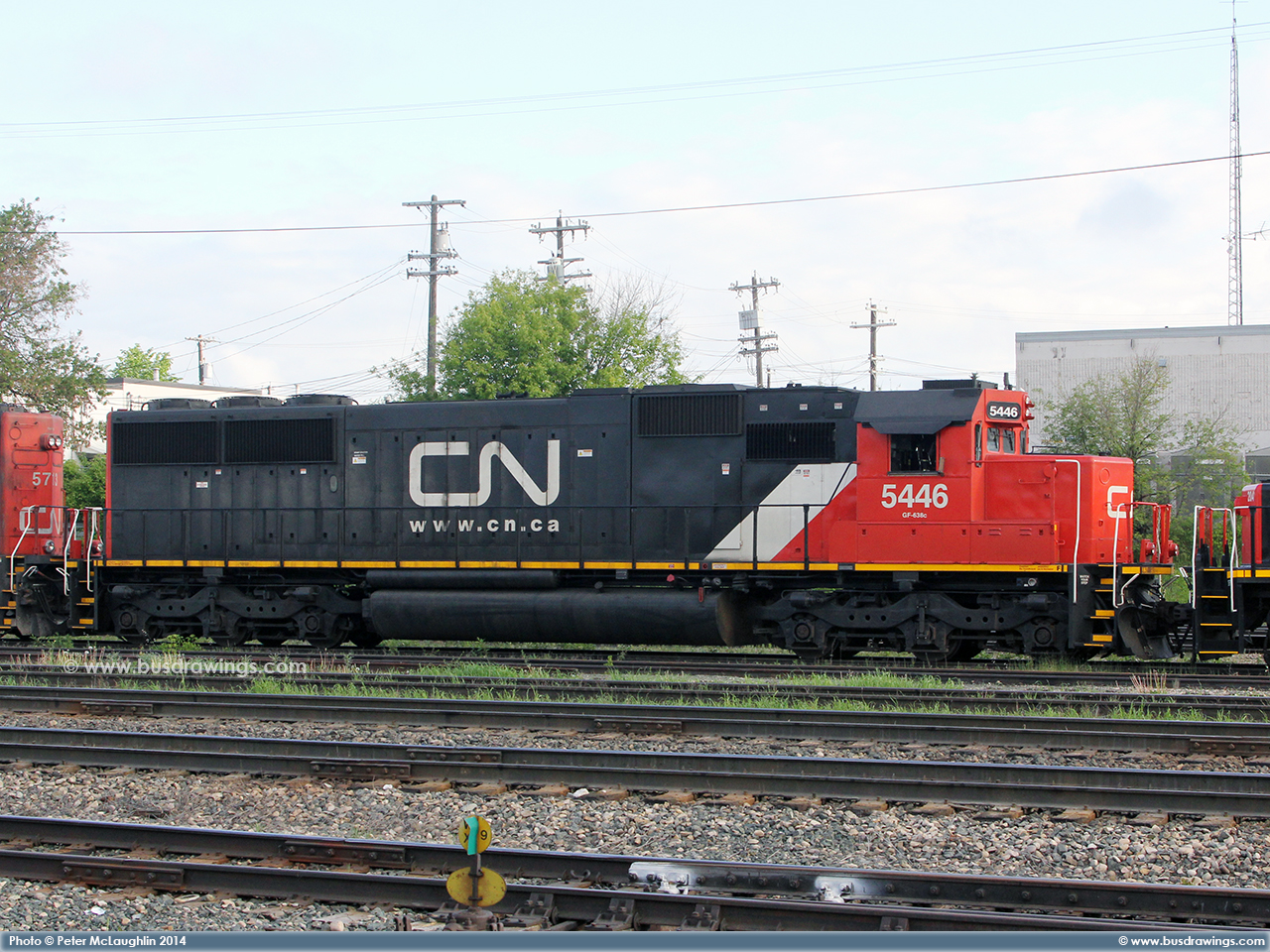 #5436 is seen resting at the CN Sarcee yard in S.E. Calgary, Alberta on June 9, 2014. Photo captured by Peter McLaughlin. |