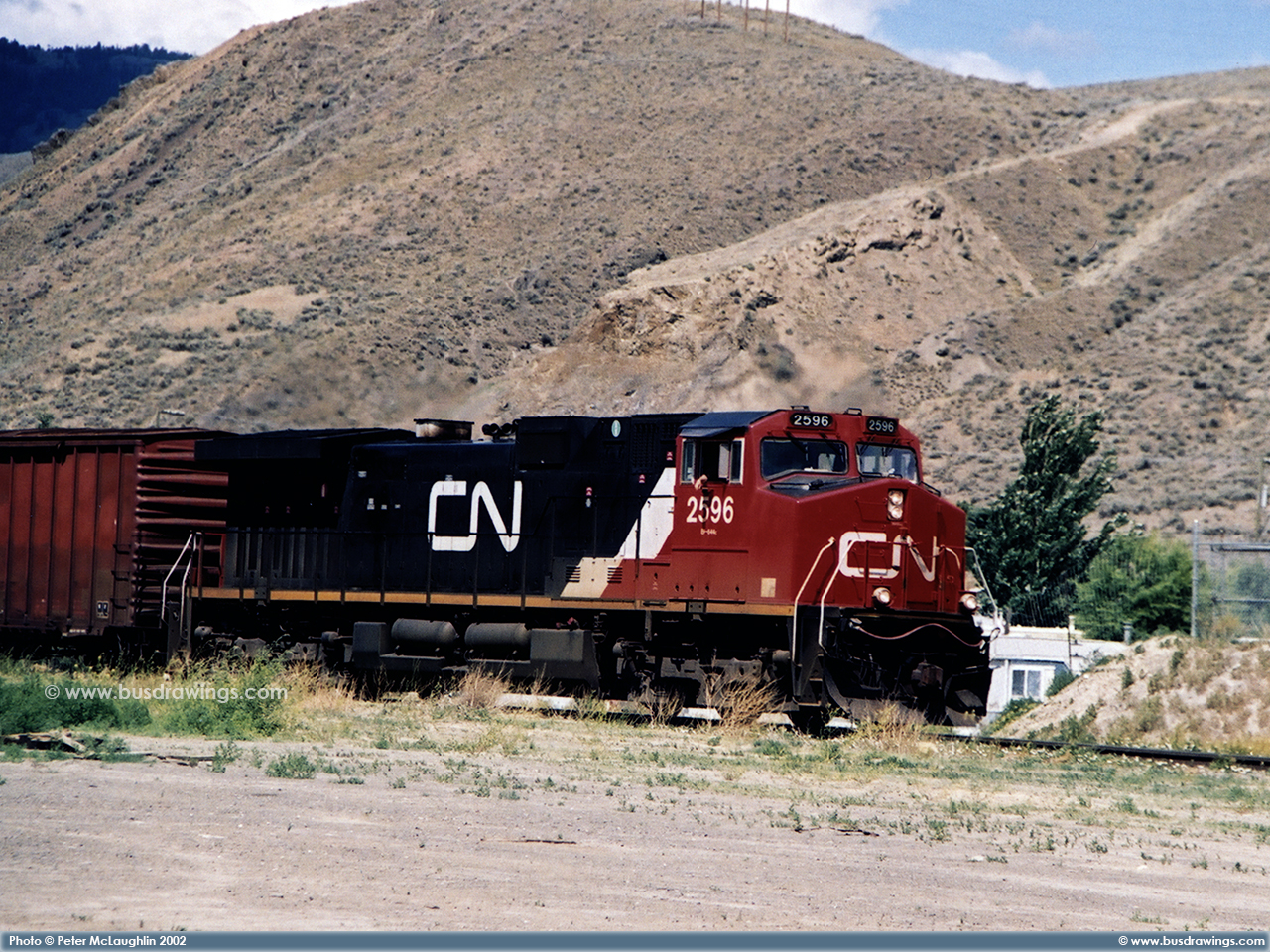 #2596 is seen working on the east end of Kamloops, British Columbia on the CP Rail Shuswap Subdivision on June 29, 2002. Photo captured by Peter McLaughlin. |