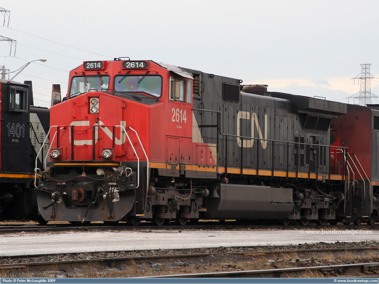 #2614 is seen resting at the CN Sarcee yard in S.E. Calgary, Alberta on February 6, 2009. Photo captured by Peter McLaughlin. |