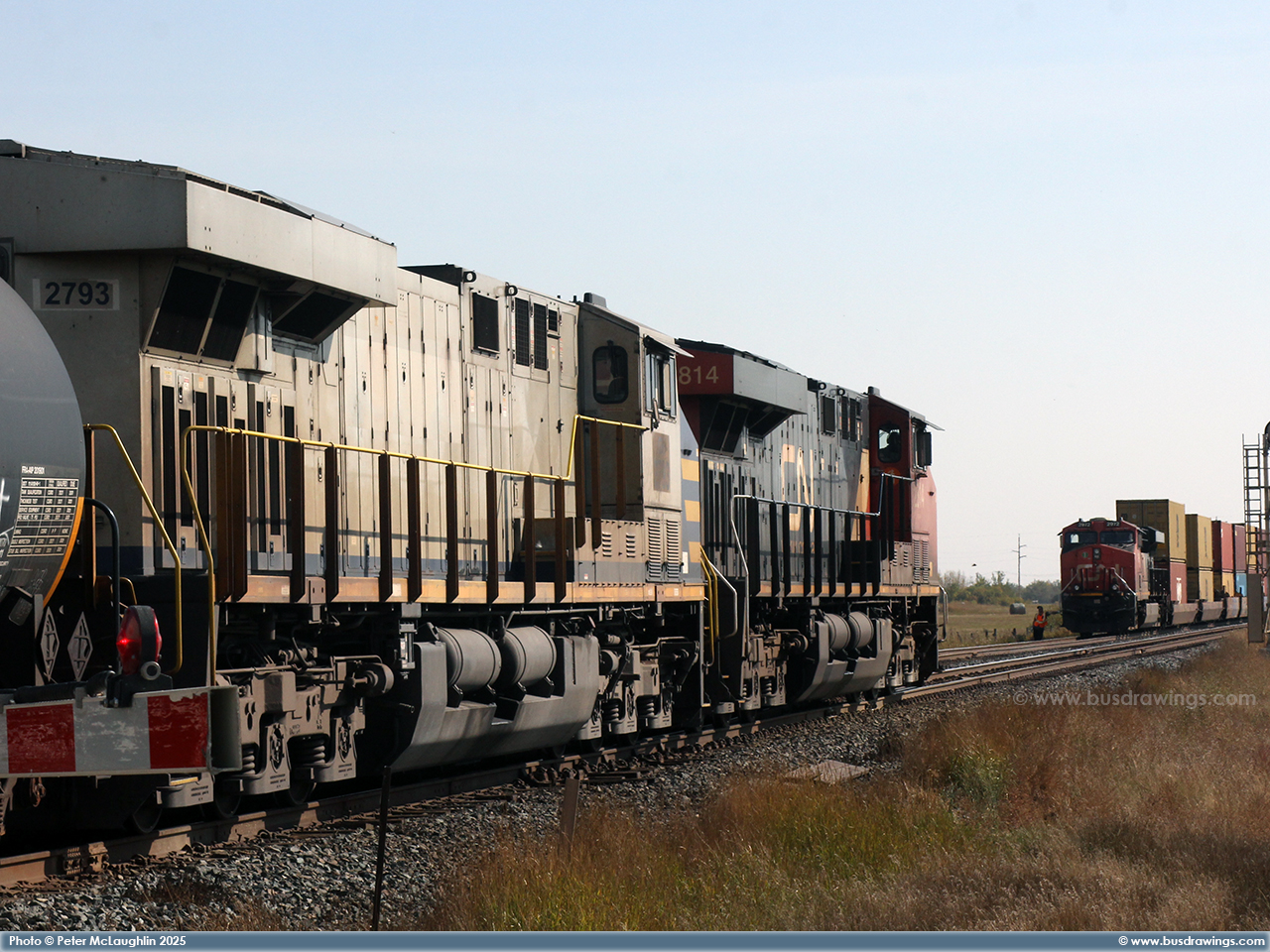 #2793 is seen working on Train 316 Eastbound on the Wainwright Subdivision at Mile 193 on September 20, 2025. Photos captured by Peter McLaughlin. |