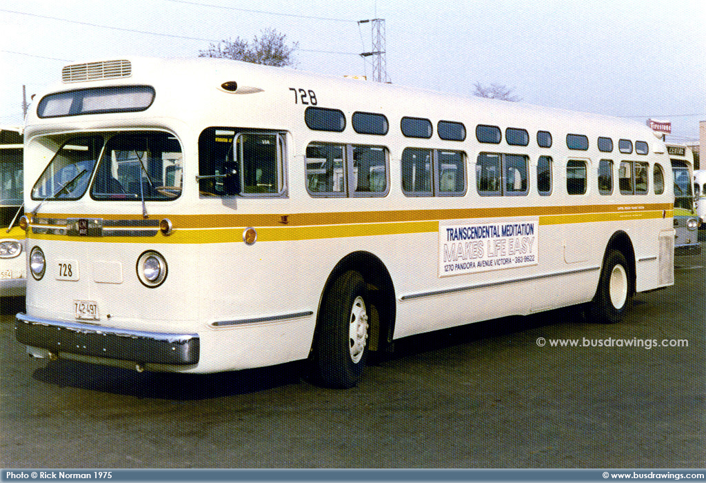 #728 resting at the Victoria Transit Centre. Date unknown. Photos captured by Rick Norman. | |