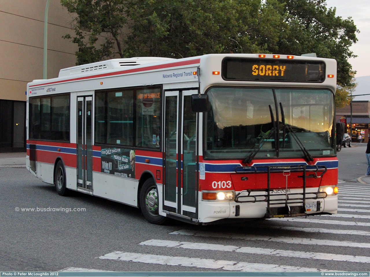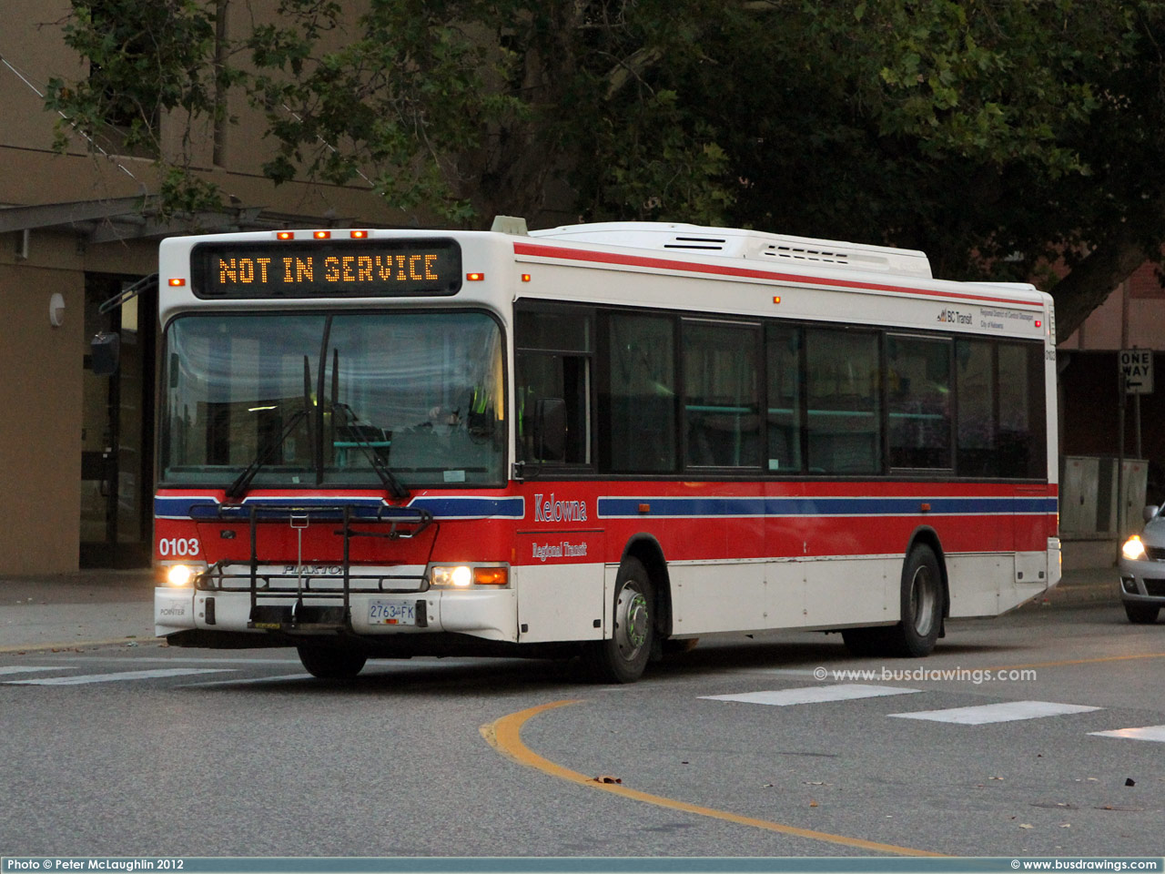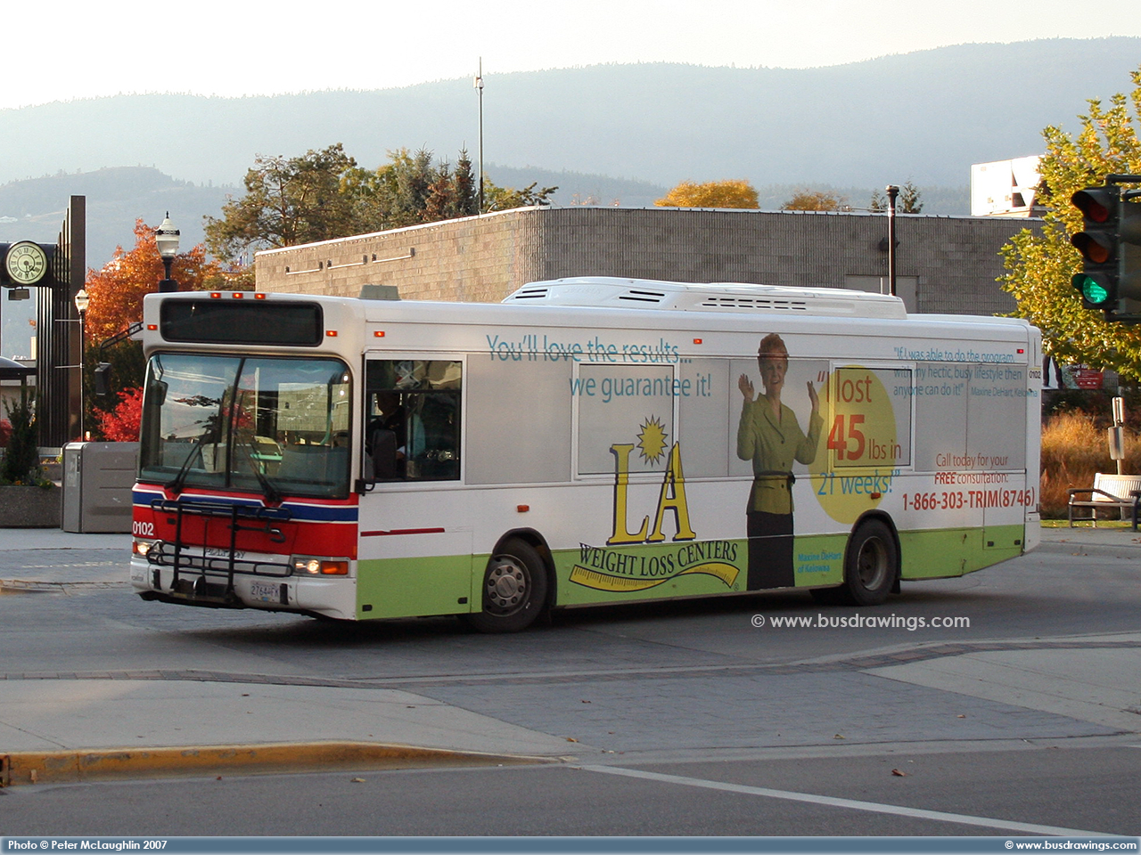 #0102 in Downtown Kelowna at the Transit Centre on October 25, 2007. Photo captured by Peter McLaughlin. | |