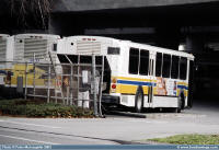 #9037 (left) and an unidentified 1990 Gillig Phantom are seen resting at the garage on December 22, 2003. Photo captured by Peter McLaughlin. | |