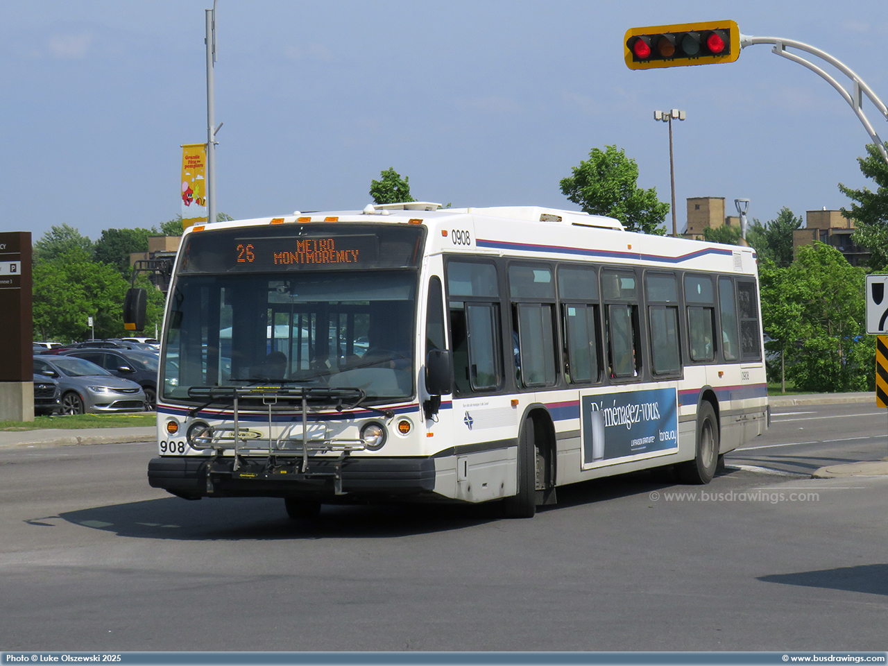 #0908 is seen just outside of the Montmorency Metro Station on June 4, 2025. Photo captured by Luke Olszewski. | |