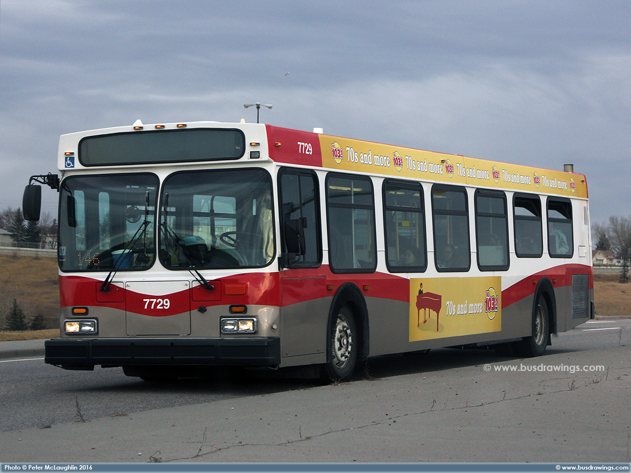 #7729 is seen working a route 20 Heritage while heading eastbound on Parkdale Blvd. just west of 27th Street N.W. on April 14, 2017. Photo captured by Peter McLaughlin. | |
