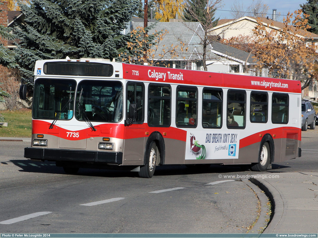 #7735 is seen working a route 3 Elbow Drive at Elbow Drive and Riverdale Ave. S.W. on October 12, 2014. Photo captured by Peter McLaughlin. | |