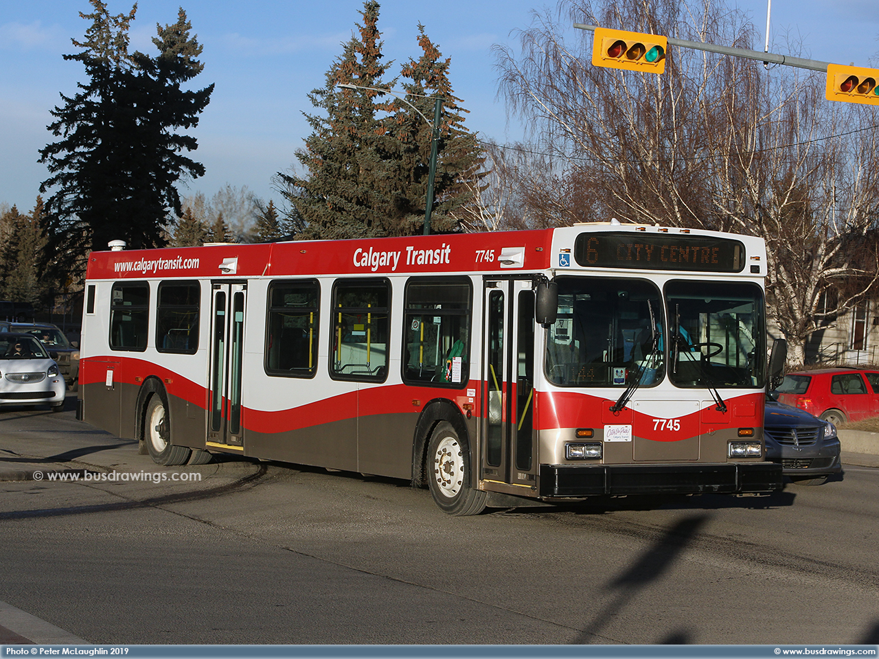 #7746 is seen working a route 6 on 26th Ave. at 25th St. S.W. on March 8, 2015. Photo captured by Peter McLaughlin. | |