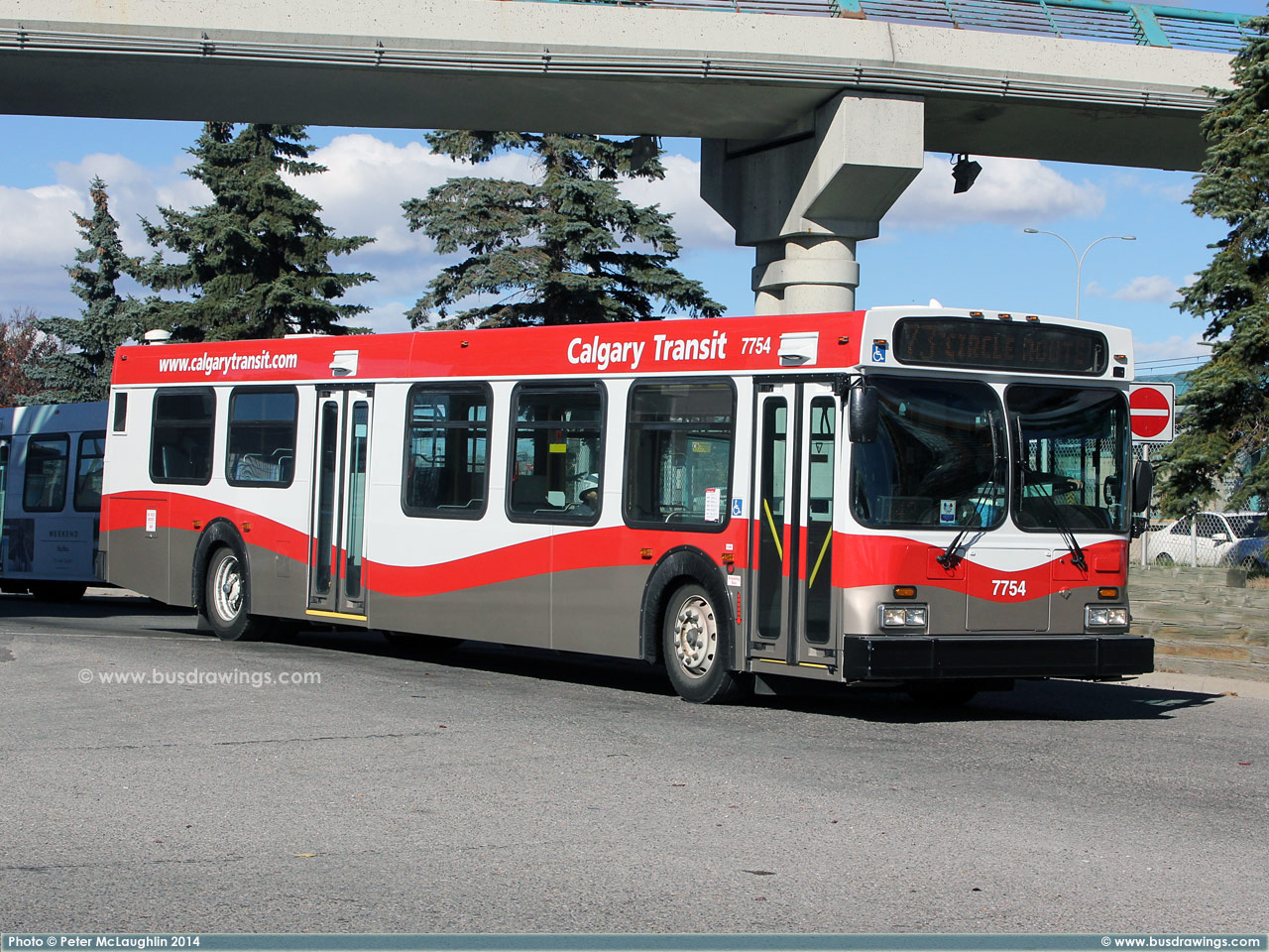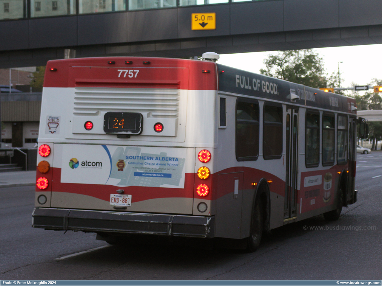 #7756 eastbound on 5th Ave. S.W. at Centre St. on October 24, 2015. Photo captured by Peter McLaughlin. | |