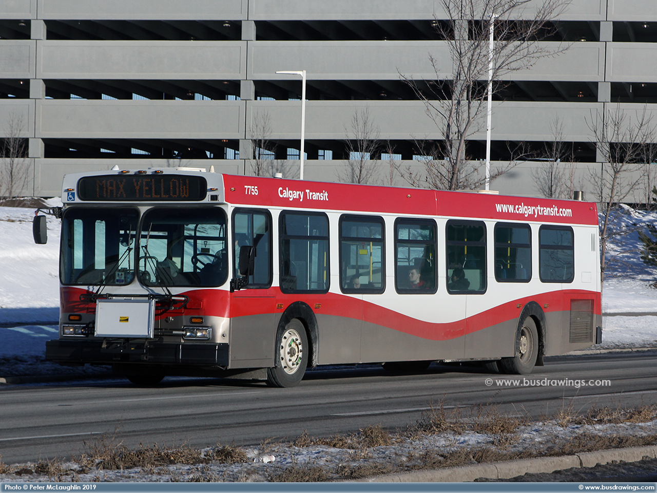 #7747 working the route 72 on 25th Street S.E. south of Peigan Trail on March 13, 2011. Photo captured by Peter McLaughlin. | |