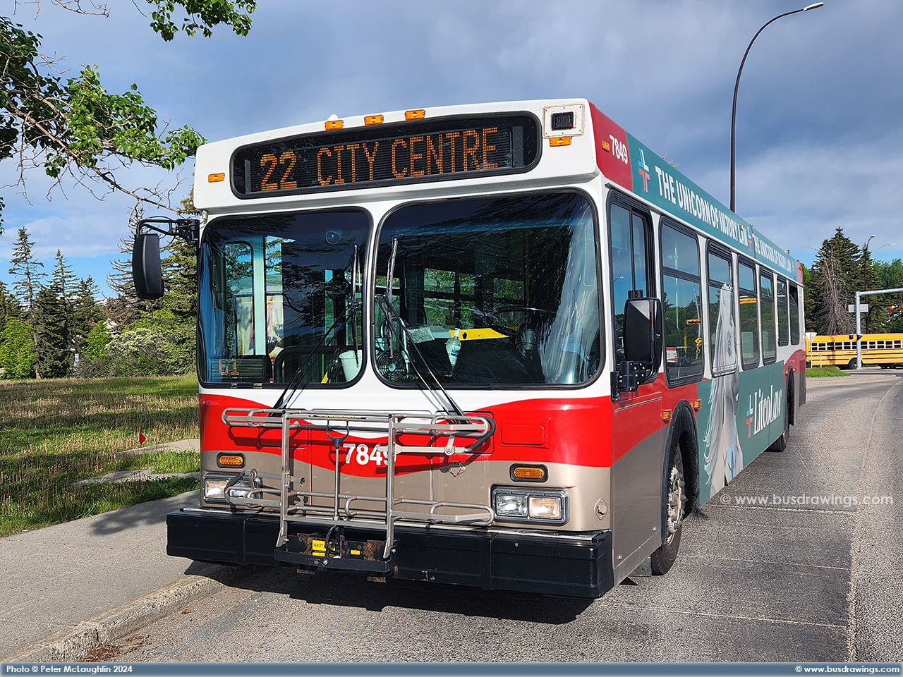 #7849 is seen on a layover on eastbound Richmond Road at Sarcee Road on June 12, 2024. Photo captured by Peter McLaughlin. | |