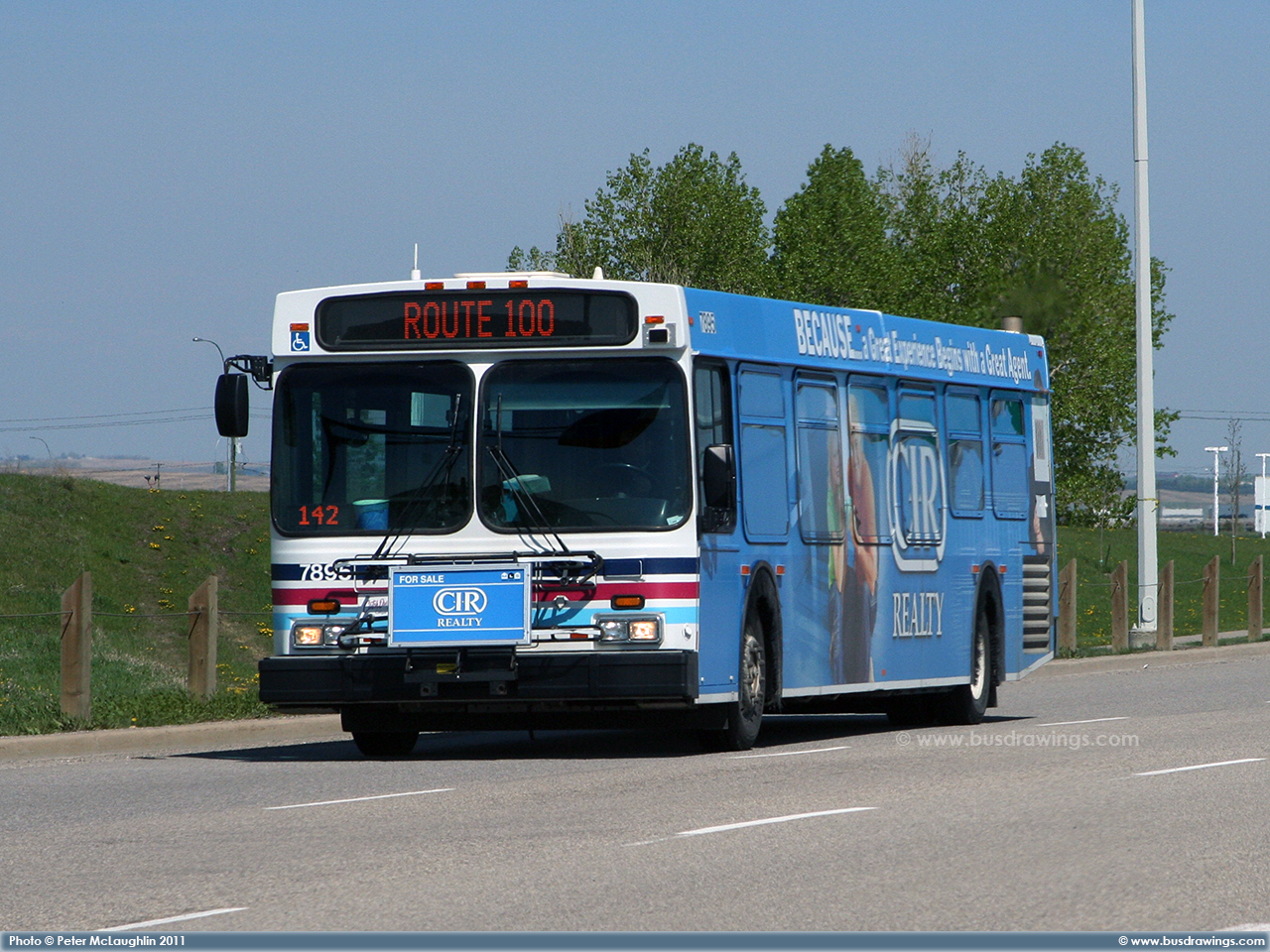 #7893 is seen on Bow Trail near 24th St. S.W. working as a route 72 Circle Route on July 1, 2014. Photo captured by Peter McLaughlin. | |