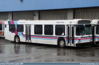 #7975 is missing her front fleet numbers in this shot captured while she was on a layover at the Anderson Station while assigned to a route 56 Woodbine in this shot captured on September 20, 2006 by Peter McLaughlin. | |