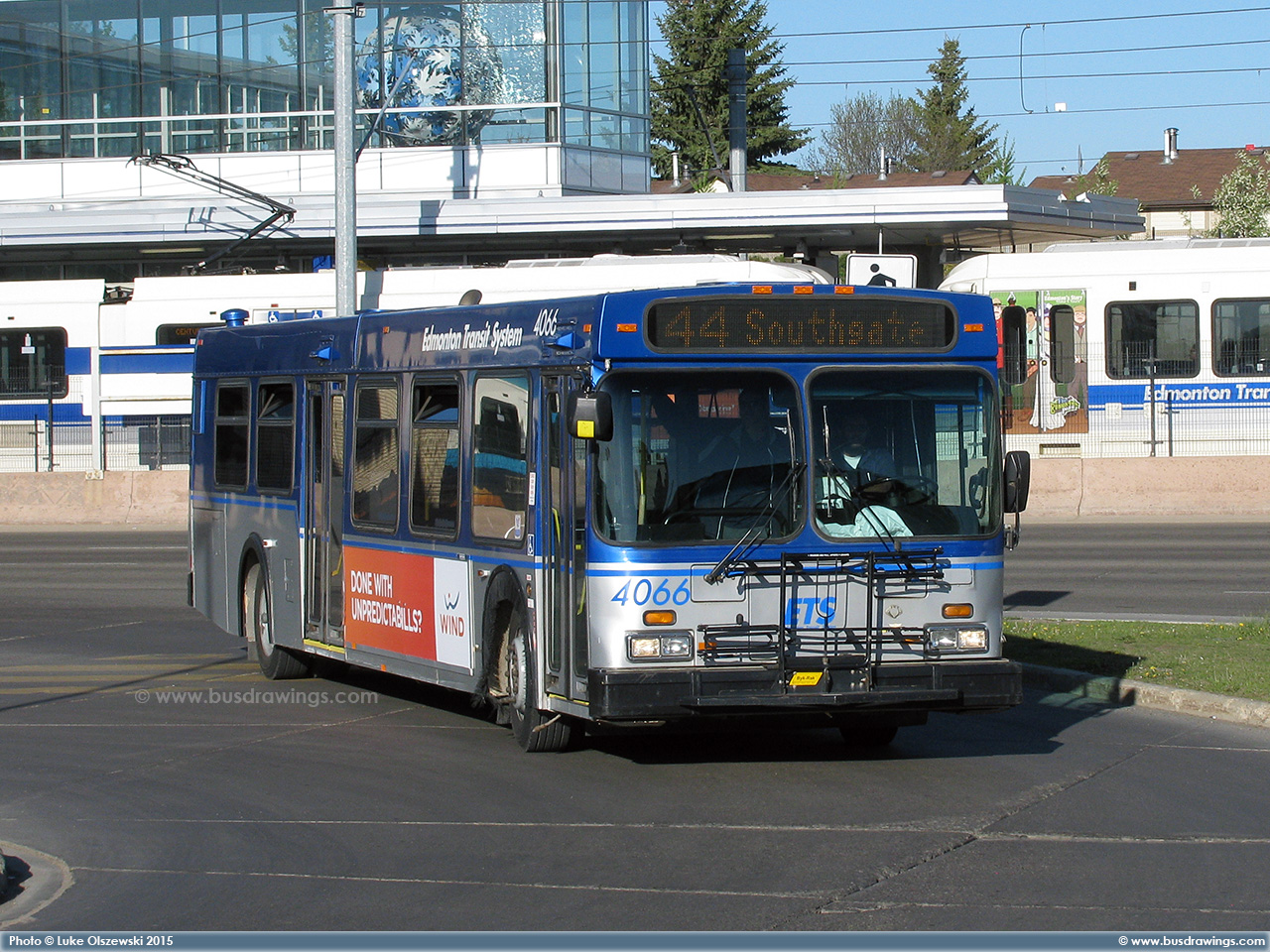 #4066 arriving at the Southgate LRT Station on May 21, 2015. Photo captured by Luke Olszewski. | |