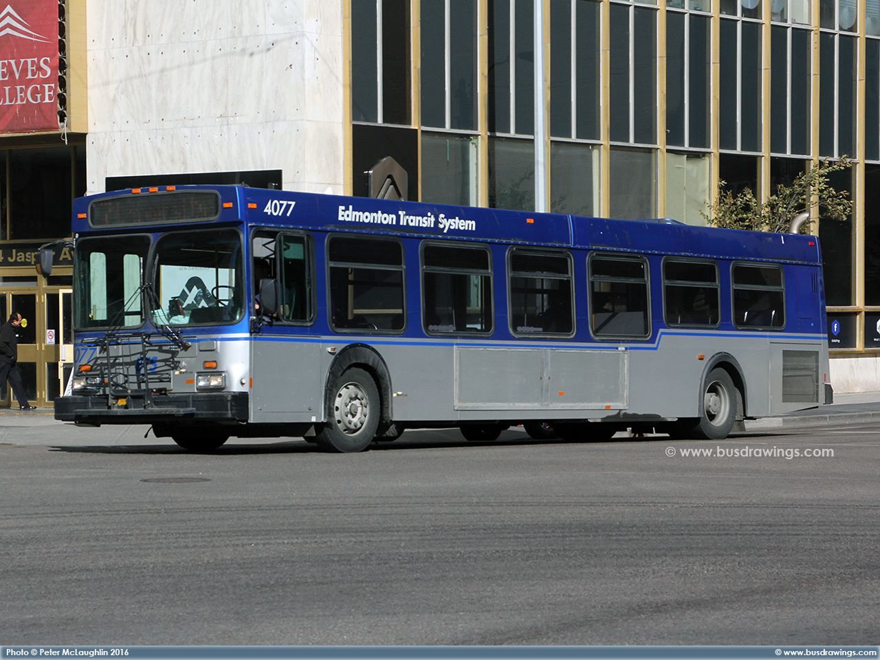 #4077 southbound on 100th St. north of Jasper Avenue on August 29, 2016. Photo captured by Peter McLaughlin. | |