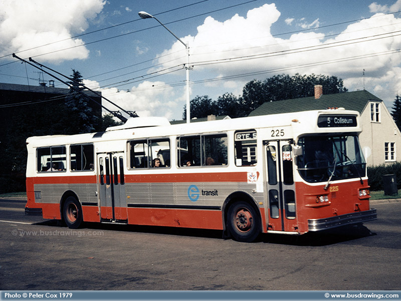 #225 is seen working as a route 5 on August 7, 1979. Photo captured by Peter Cox. | |