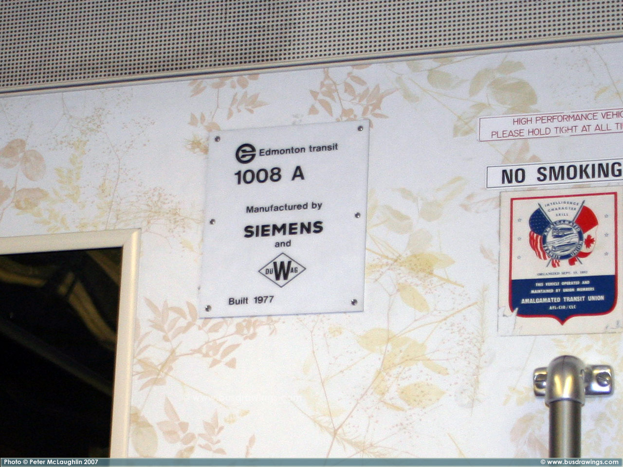 Here are several photos of #1007 showing the earlier interior including the earlier style of window frames found on the earlier ETS U2 cars. Photos captured by Peter McLaughlin on February 5, 2007. | |