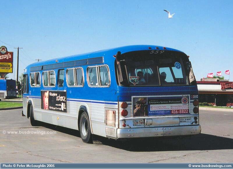 #536 was refurbished a few years ago before these 3 shots were taken on May 31, 2005. #536 is seen departing the Mitchell Transit Garage for the afternoon rush hour in these shots captured by Peter McLaughlin. A very nice 33 year old bus still looking good after all that time! | |