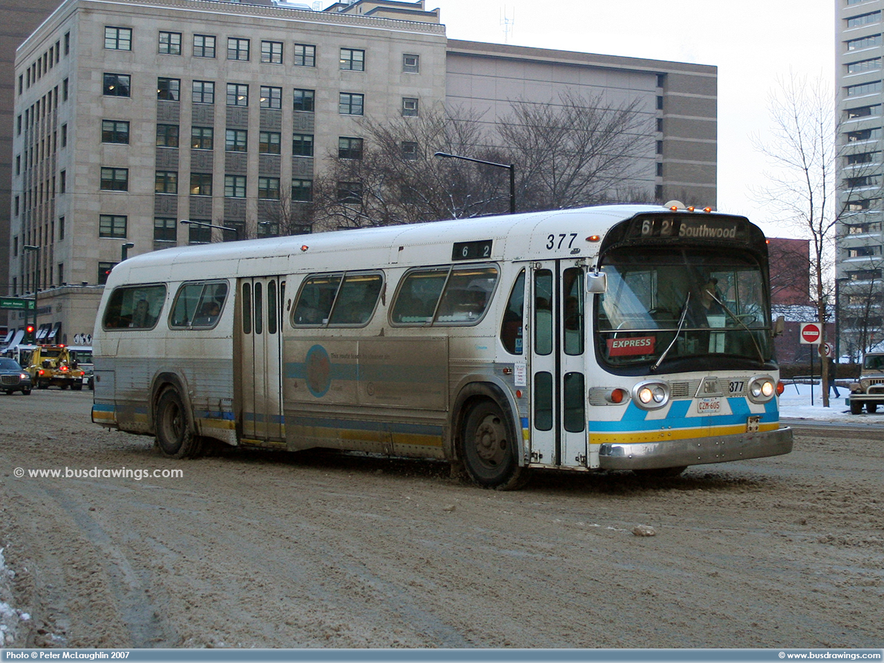 #377 southbound on 100th St. south of Jasper Ave. on February 5, 2007. Photo captured by Peter McLaughlin. | |