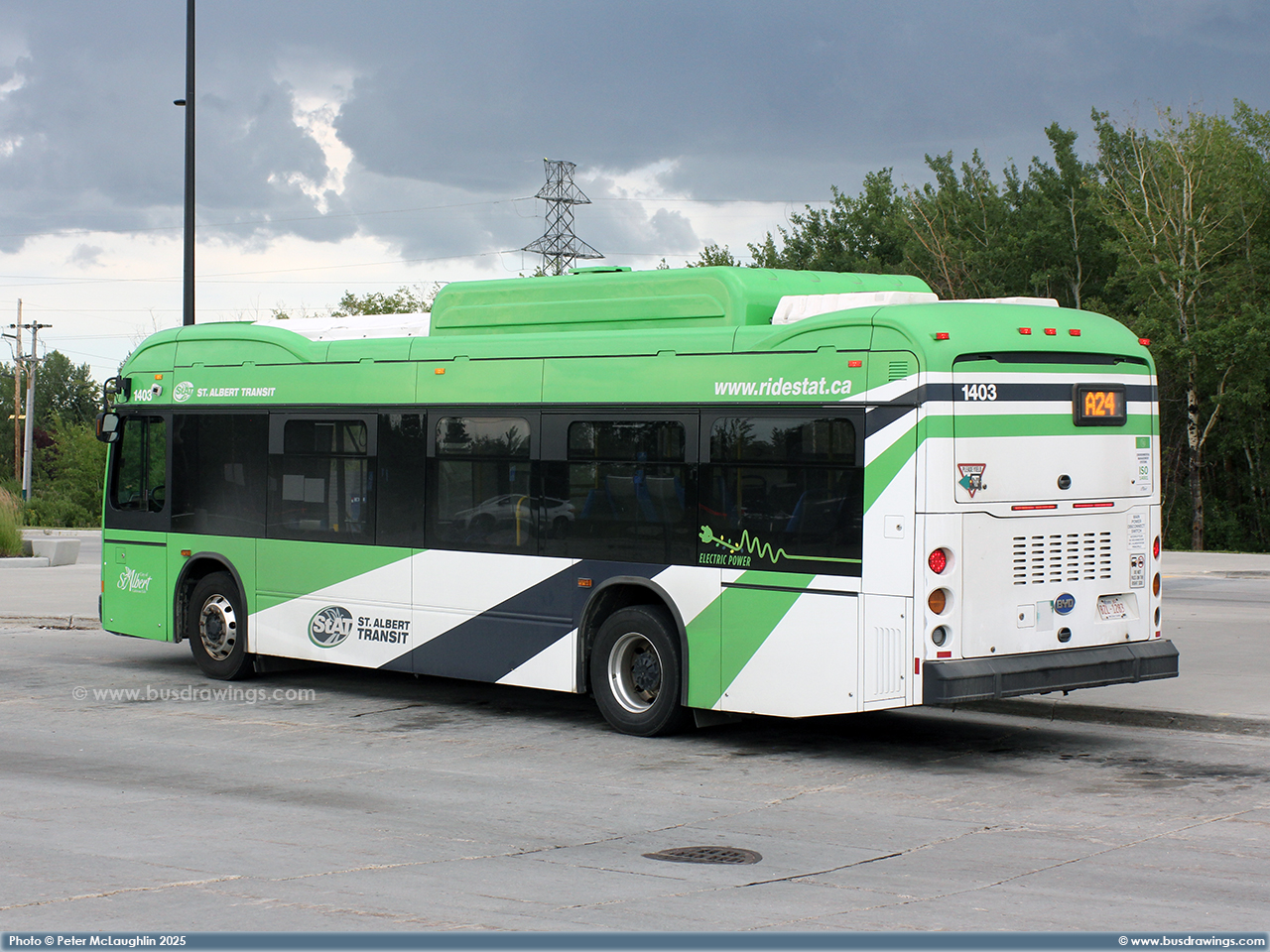 #1403 is seen on a layover at the Nakî Transit Centre on July 24, 2025. Photo captured by Peter McLaughlin. | |