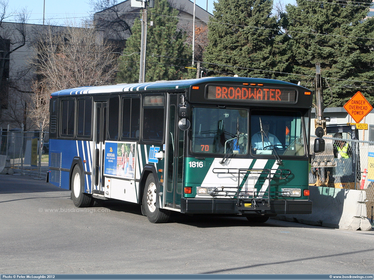 #1816 arriving at the downtown transit center on April 10, 2012. Photo captured by Peter McLaughlin. | |