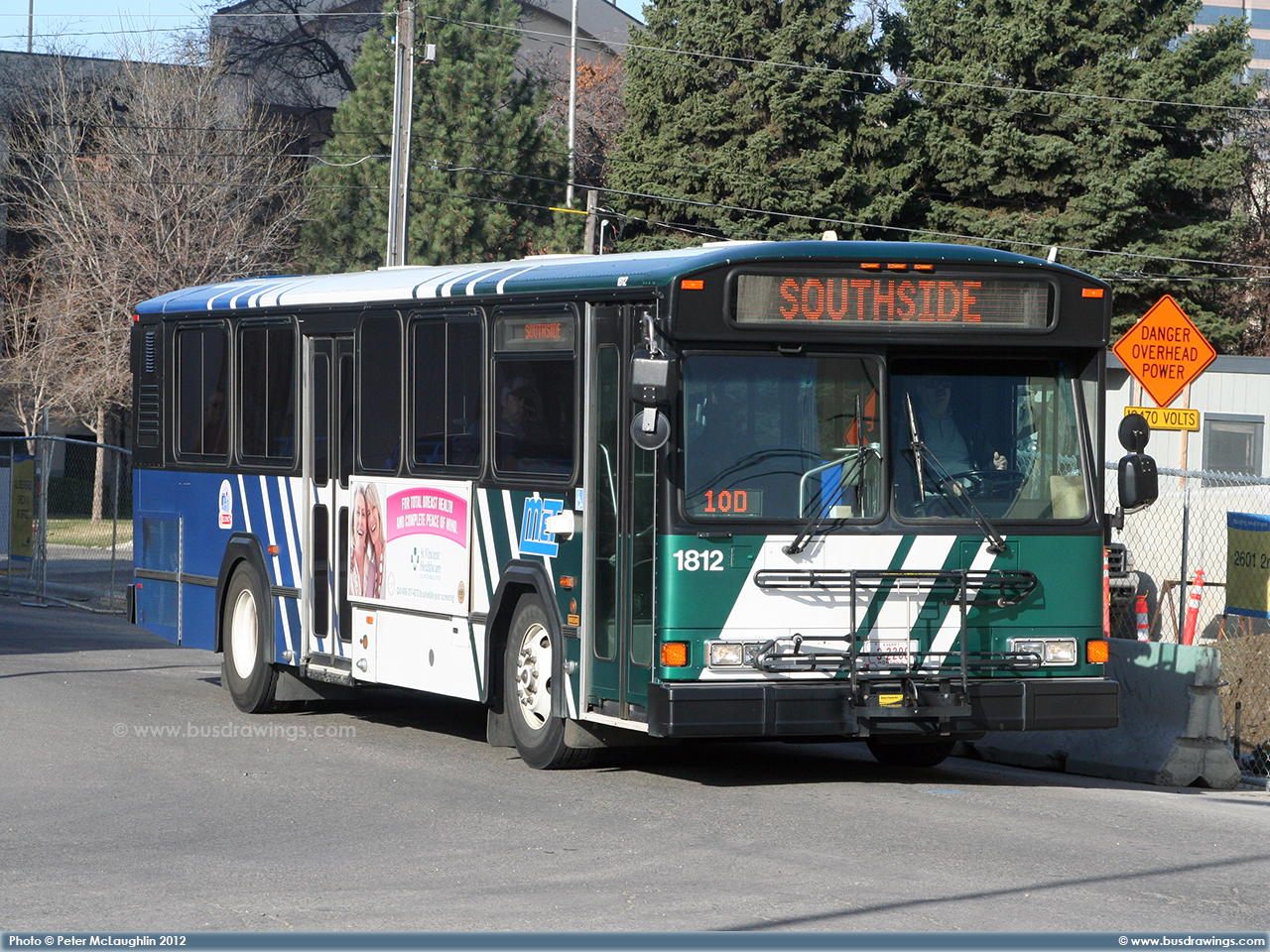 #1812 arriving at the downtown transit center on April 10, 2012. Photo captured by Peter McLaughlin. | |