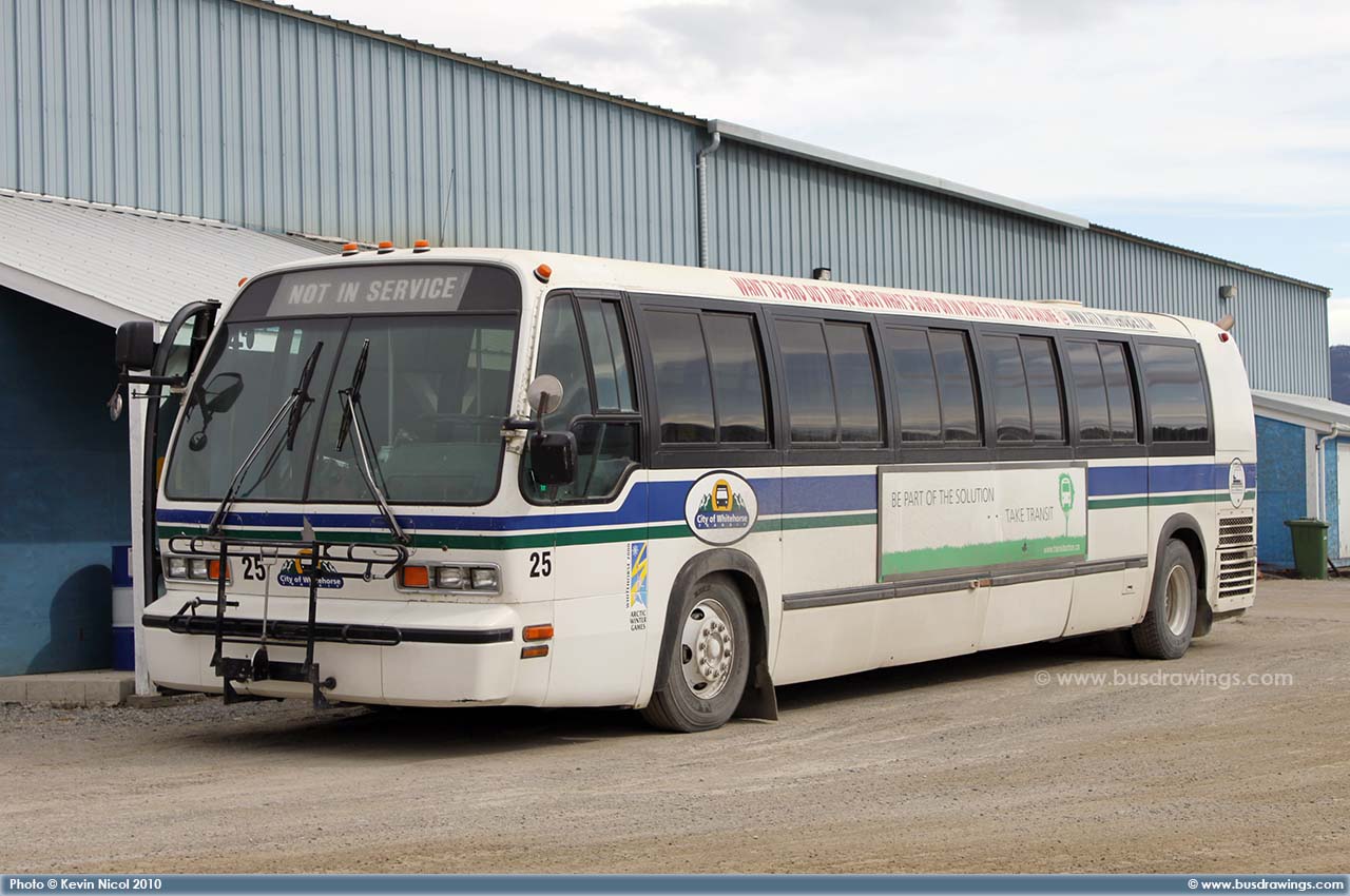 #25 is seen resting at the Whitehorse Transit Garage on April 27, 2010. Photo captured by Kevin Nicol. | |