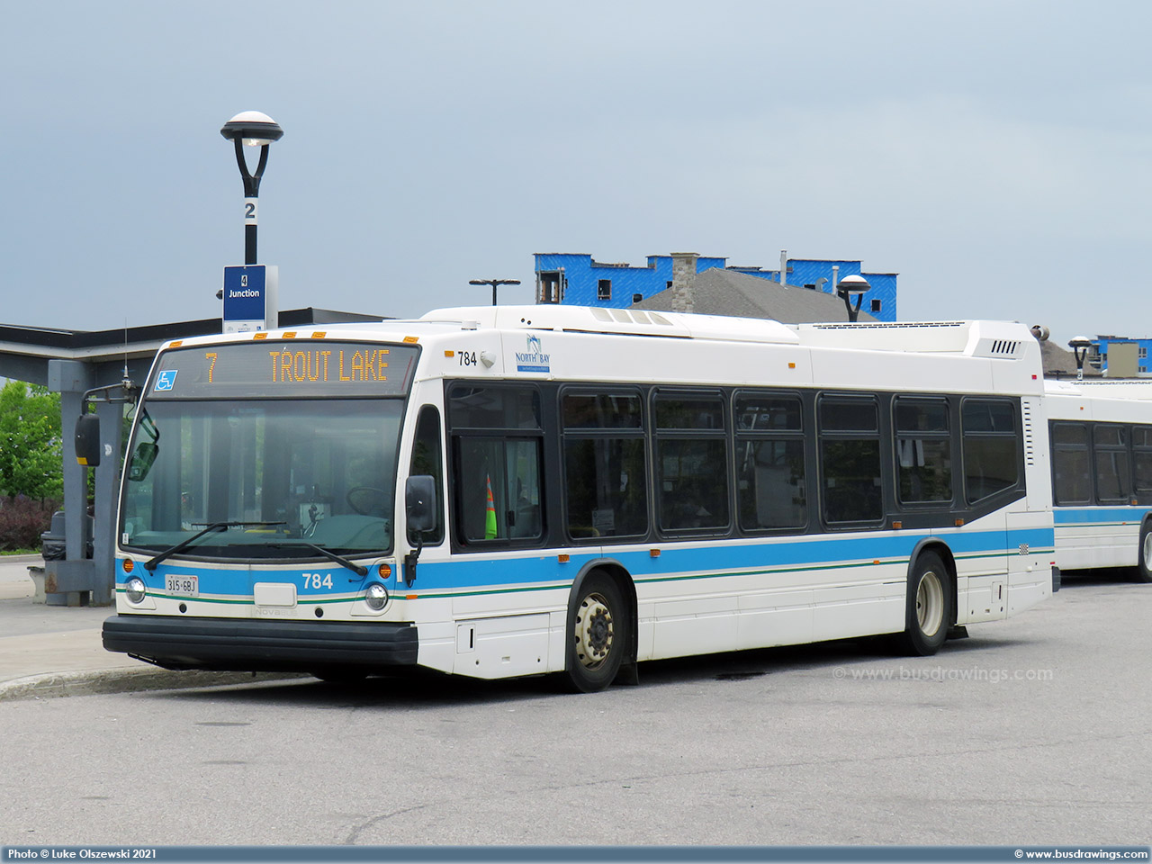 #784 is seen at the downtown terminal on July 5, 2021. Photo captured by Luke Olszewski. | |