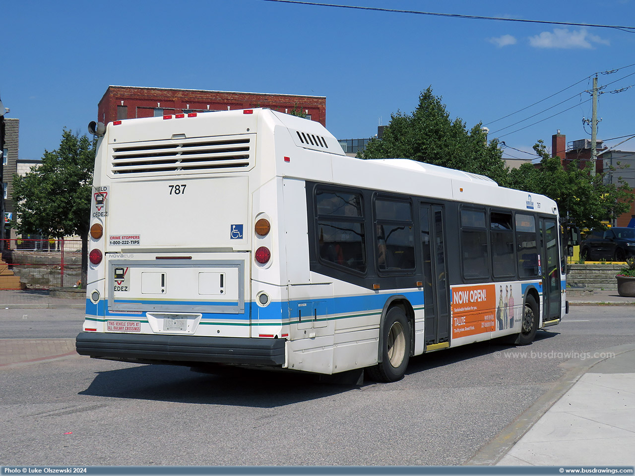 #787 is seen at the downtown terminal on July 16, 2024. Photo captured by Luke Olszewski. | |