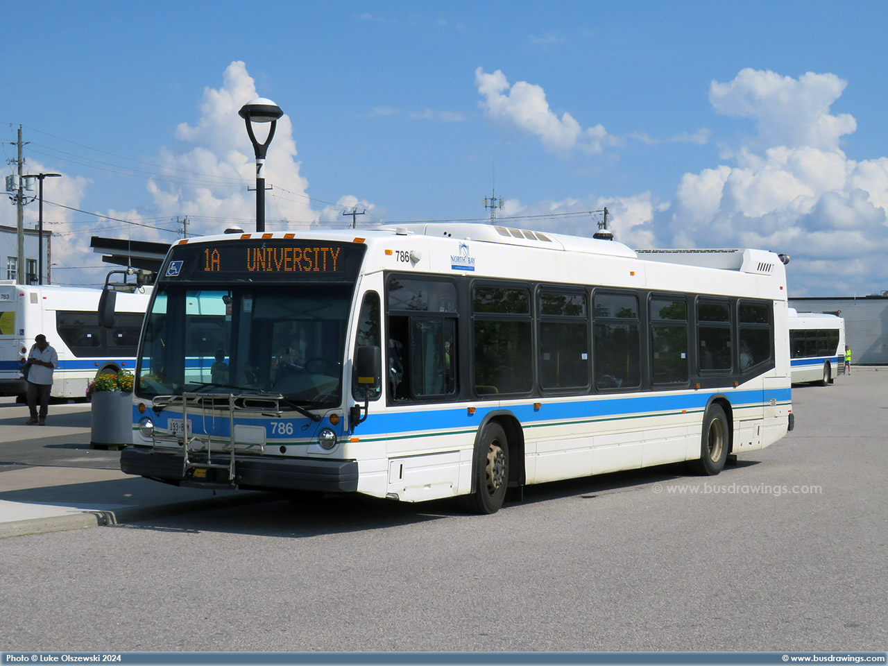 #786 is seen at the downtown terminal on July 16, 2024. Photo captured by Luke Olszewski. | |