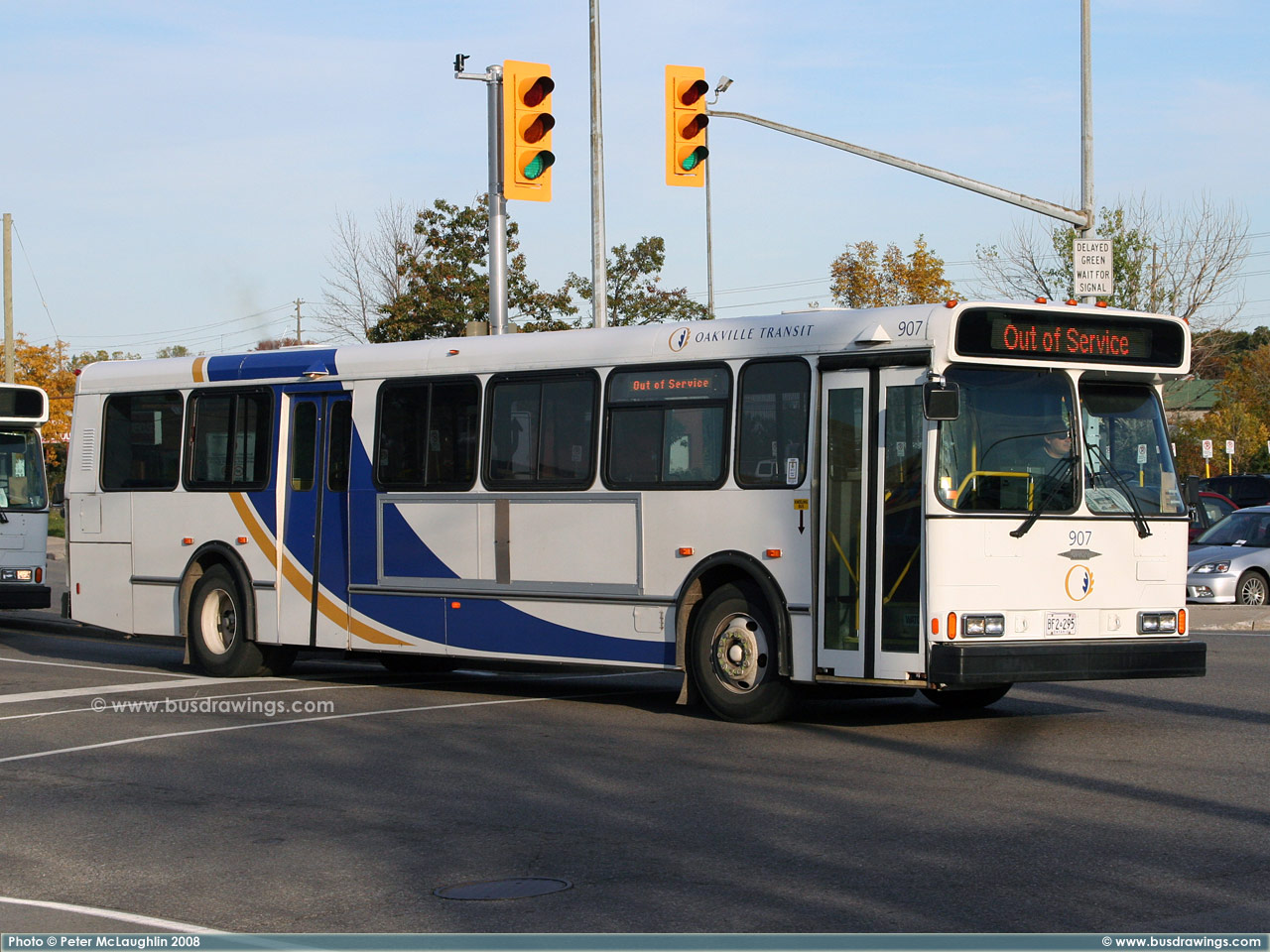 #906 arriving at the Oakville GO station on October 17, 2008. Photo captured by Peter McLaughlin. | |