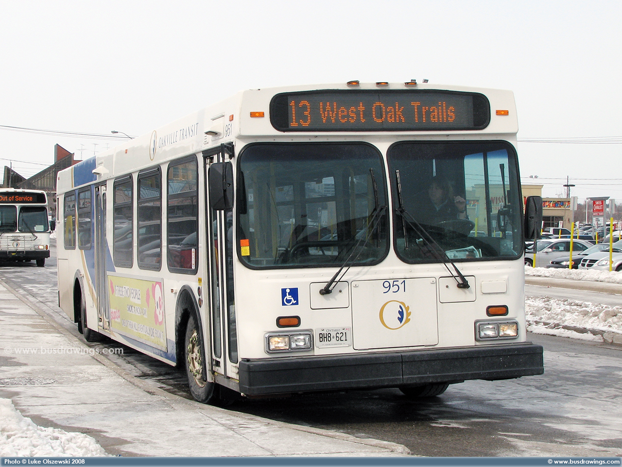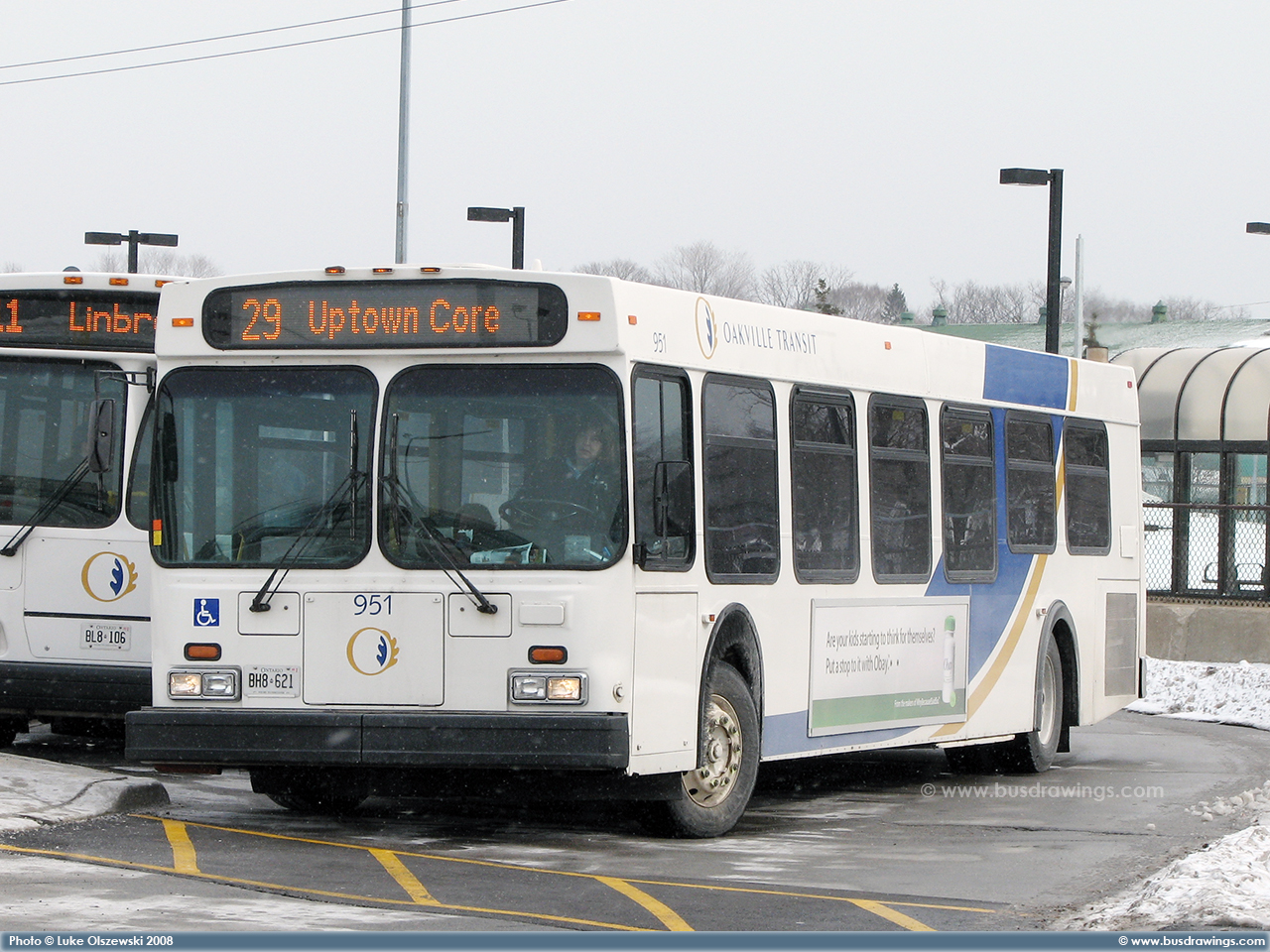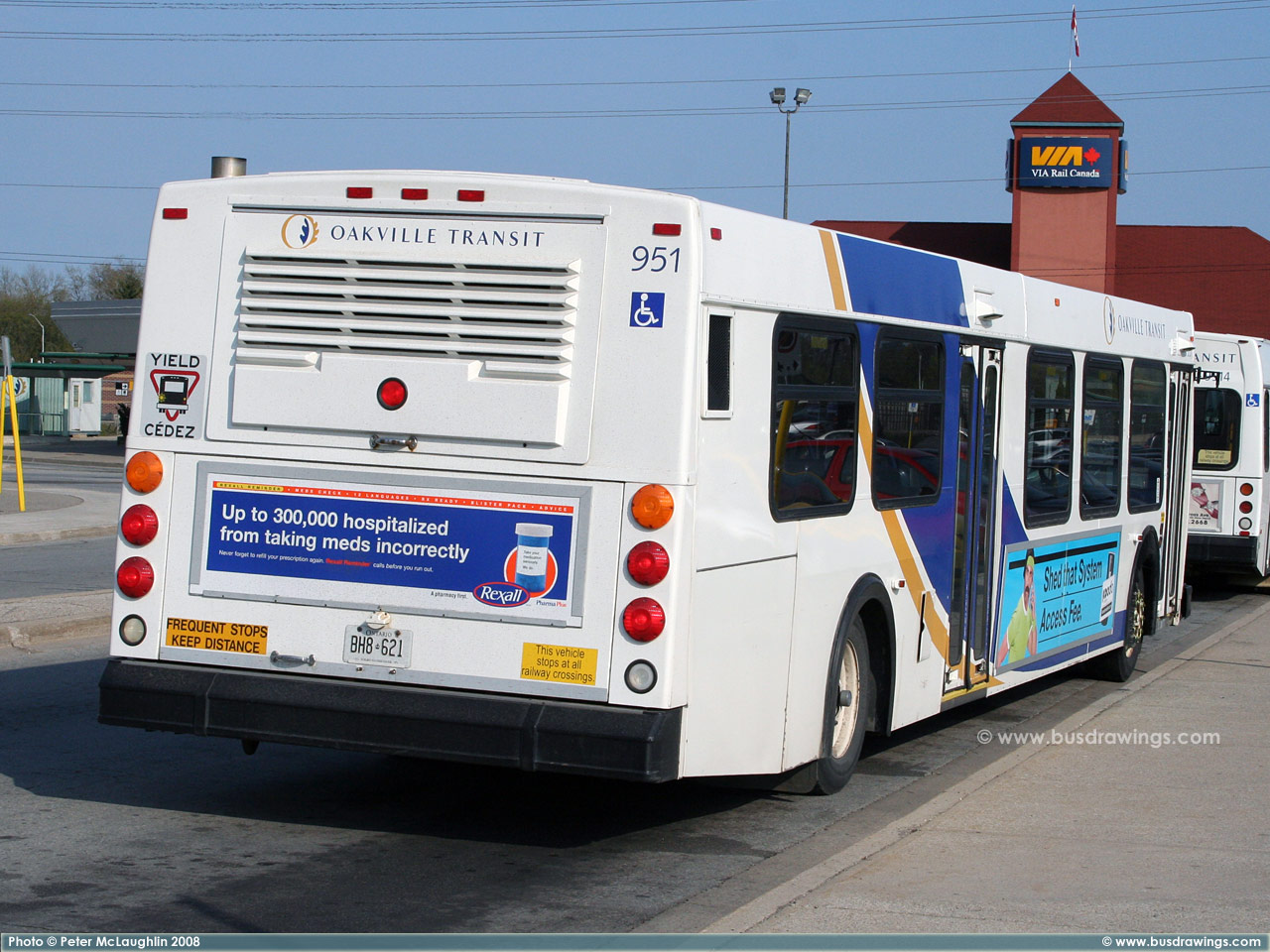 #951 at the Oakville GO Station on May 6, 2008. Photo captured by Peter McLaughlin. | |