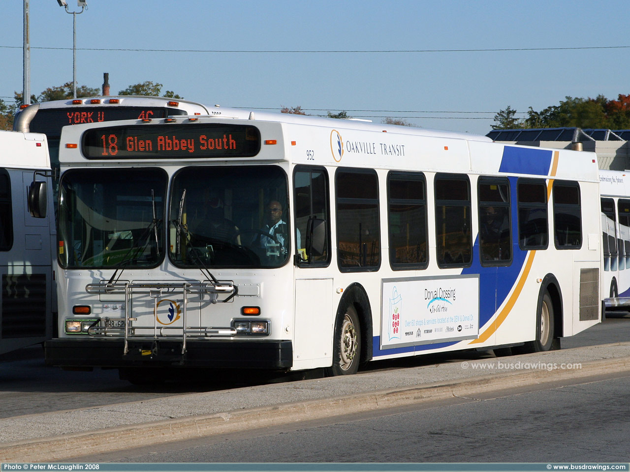 #952 departing from the Oakville GO Station on October 17, 2008. Photo captured by Peter McLaughlin. | |