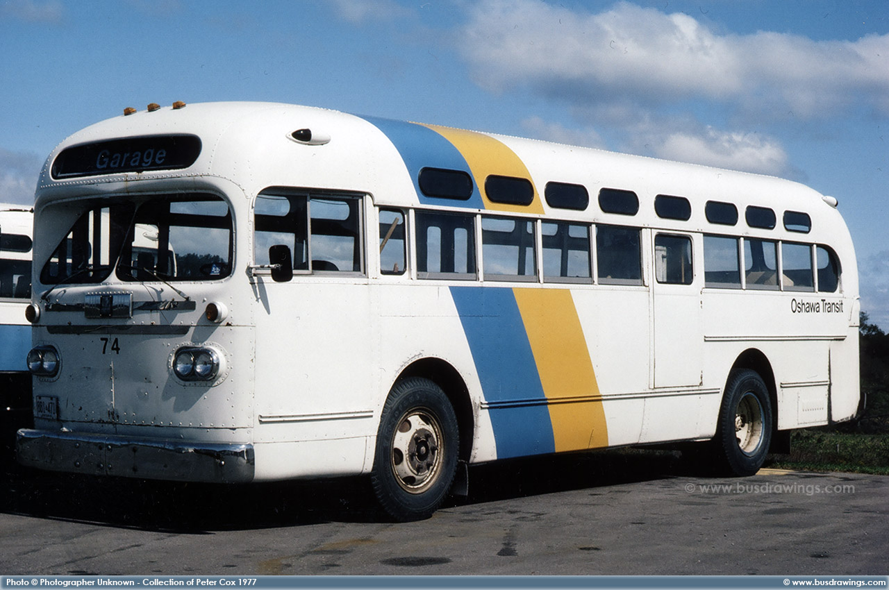 #74 at the Oshawa Transit Garage on August 19, 1977. Photographer unknown.