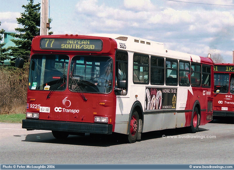 #9225 is seen with signs displaying as route 77 Nepean South at the Hurdman Station in this view captured on April 18, 2006. Peter McLaughlin Photo. | |
