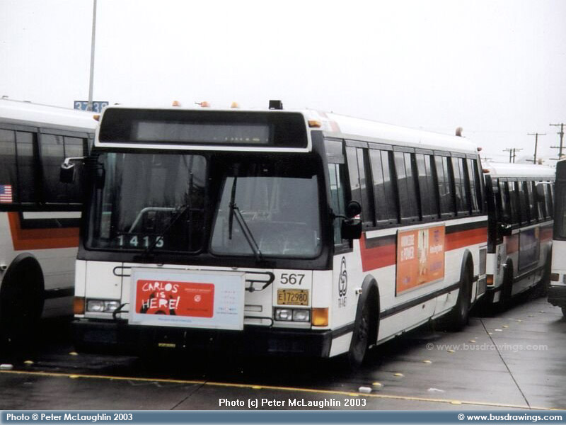 #567 is seen resting at a Tri-Met Base in this shot captured by Peter McLaughlin on December 21, 2003. | |