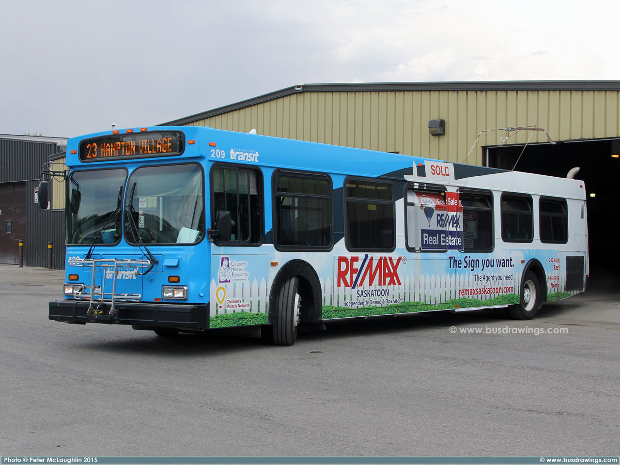 #209 is seen leaving the old Saskatoon Transit Garage in the afternoon on May 26, 2015. Photo captured by Peter McLaughlin. | |
