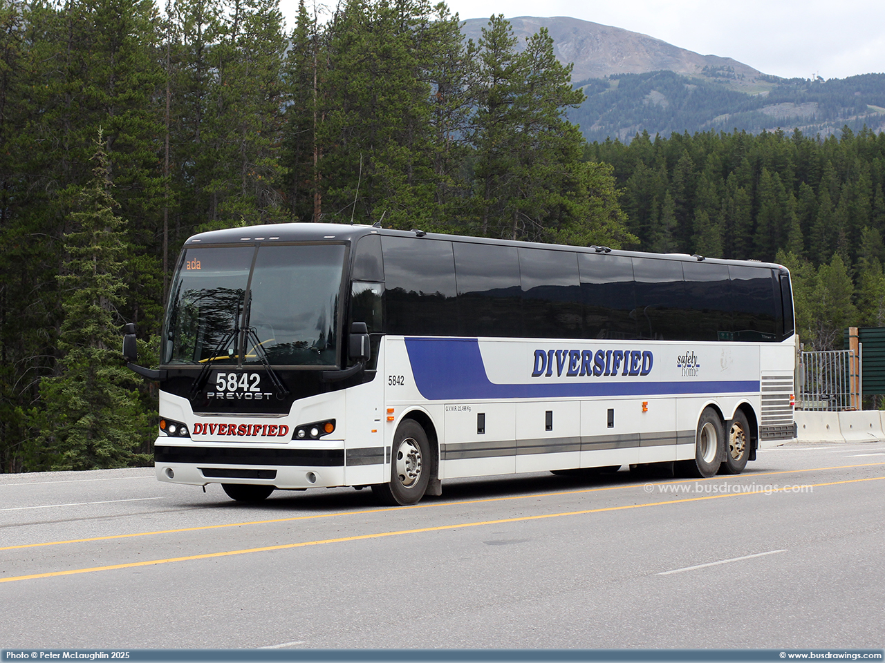 #5842 is seen on Lake Louise Drive near Village Road heading to Lake Louise from the Lake Louise Over-Flow Parking lot on August 2, 2025. Photo captured by Peter McLaughlin. | |