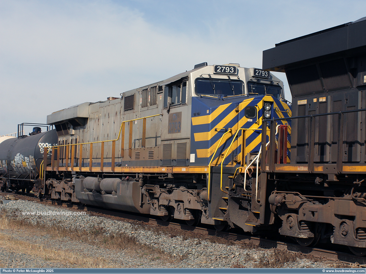 #2793 is seen working on Train 316 Eastbound on the Wainwright Subdivision at Mile 193 on September 20, 2025. Photos captured by Peter McLaughlin. |