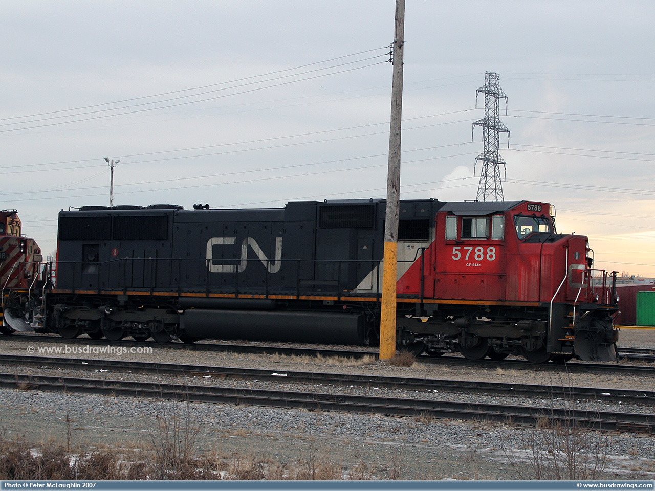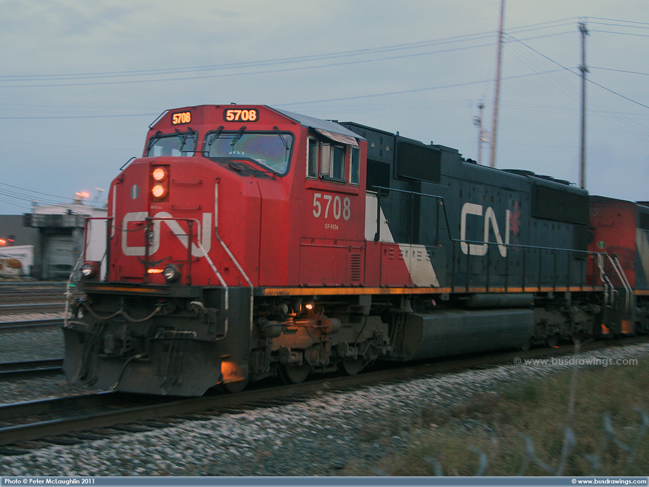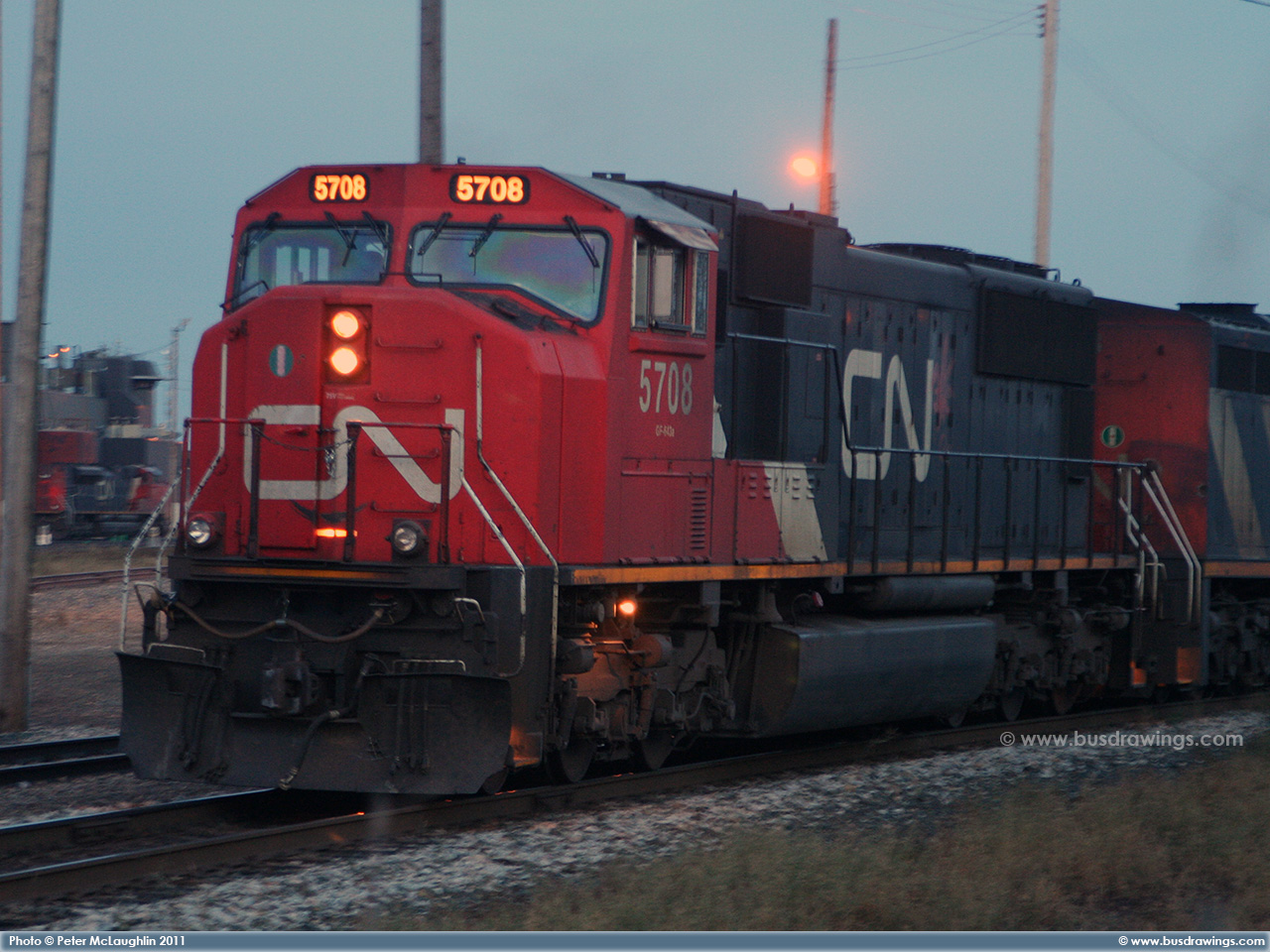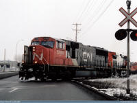 #5780 is seen leading CN #'s 2658 and 6928 as they depart light loaded out of the Sarcee yard in S.E. Calgary in December of 2005. Exact date unknown. Photo captured by Peter McLaughlin. |