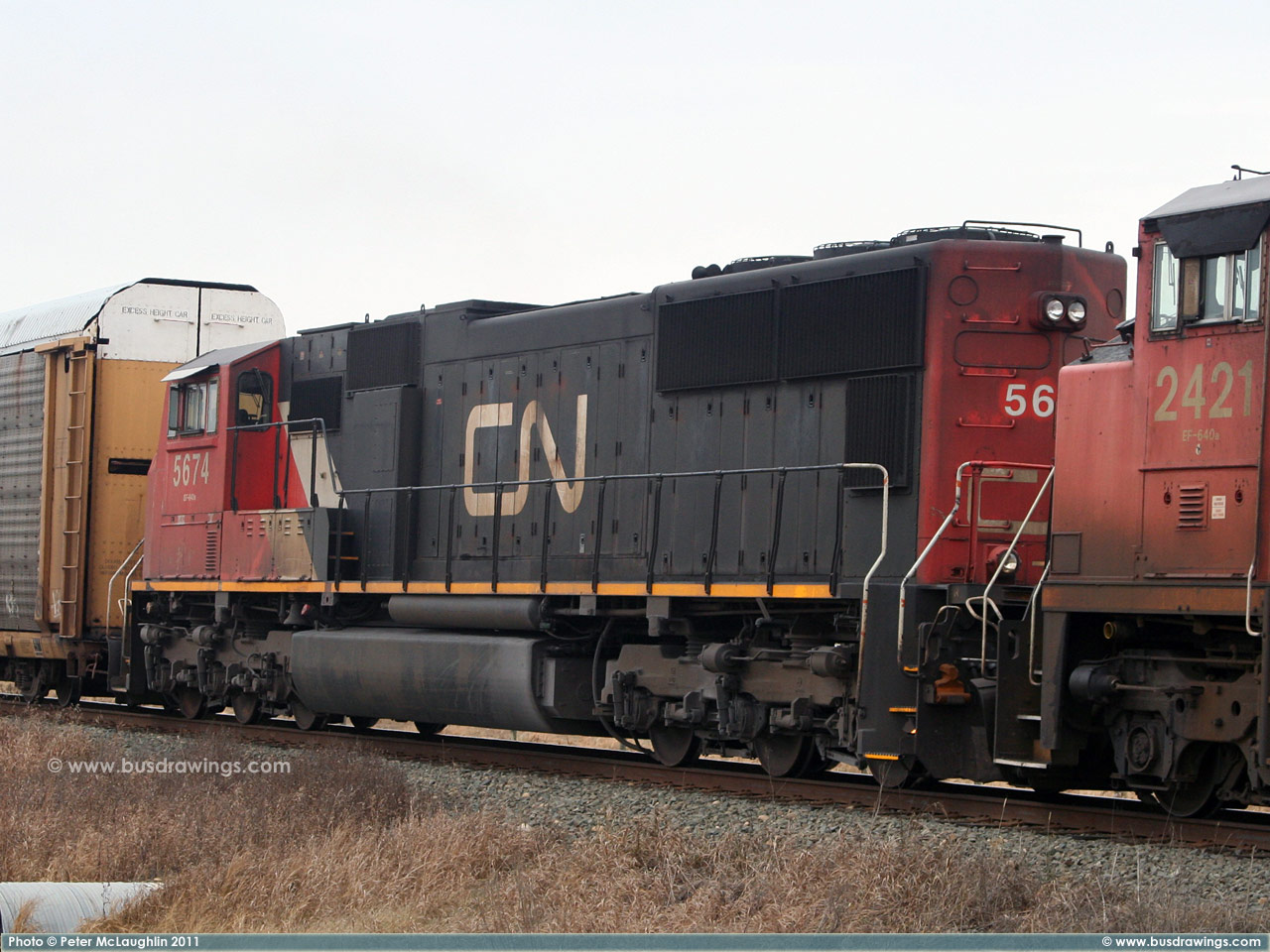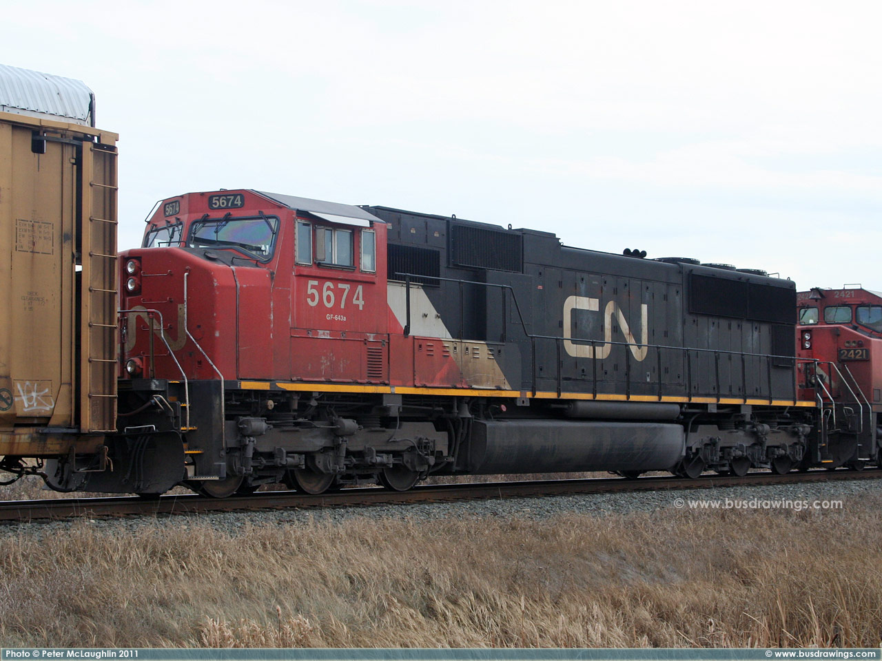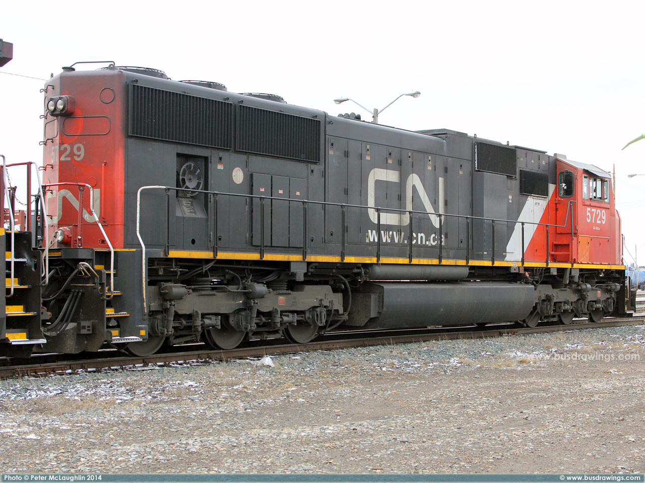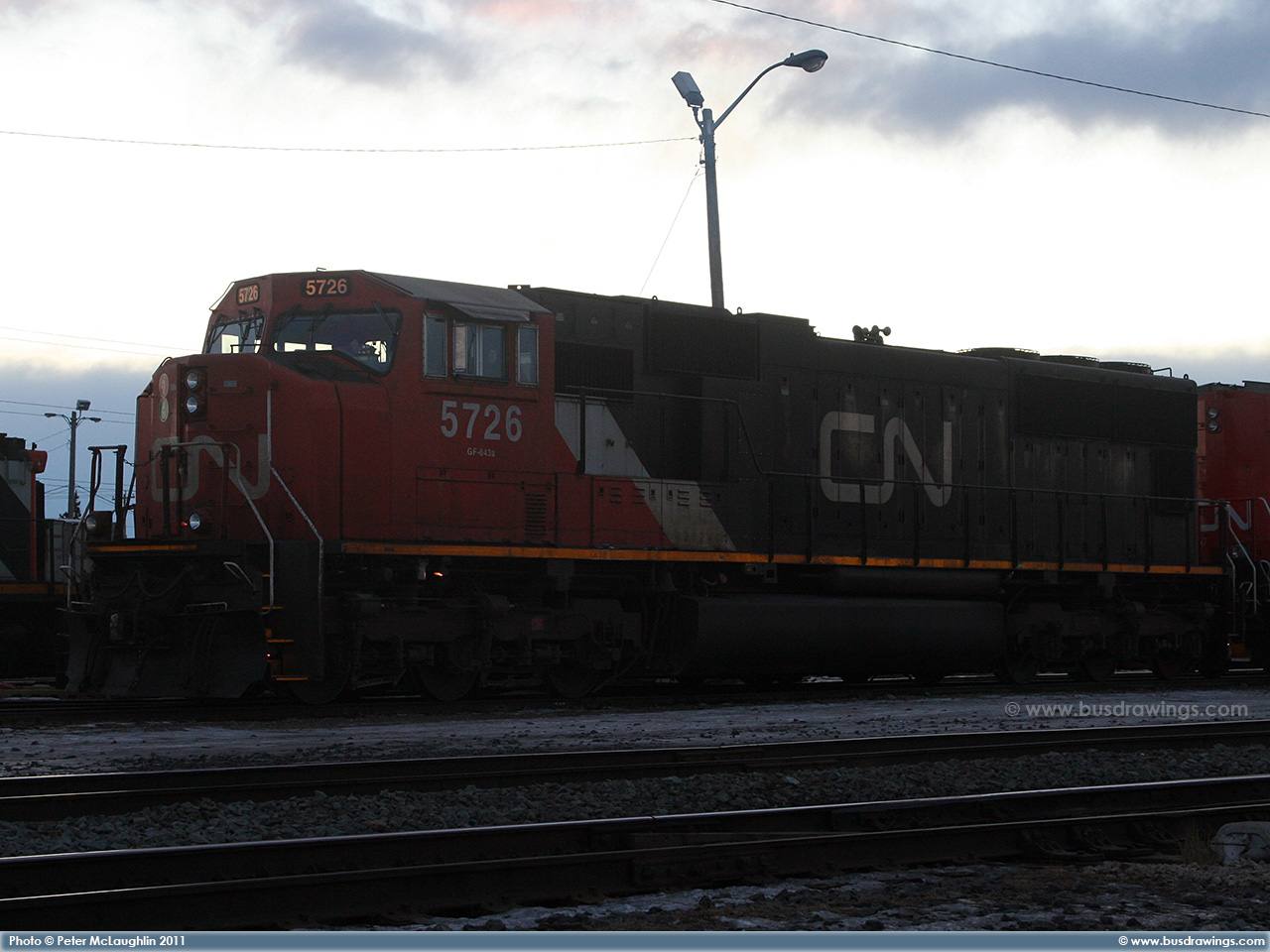 #5780 is seen leading CN #'s 2658 and 6928 as they depart light loaded out of the Sarcee yard in S.E. Calgary in December of 2005. Exact date unknown. Photo captured by Peter McLaughlin. |