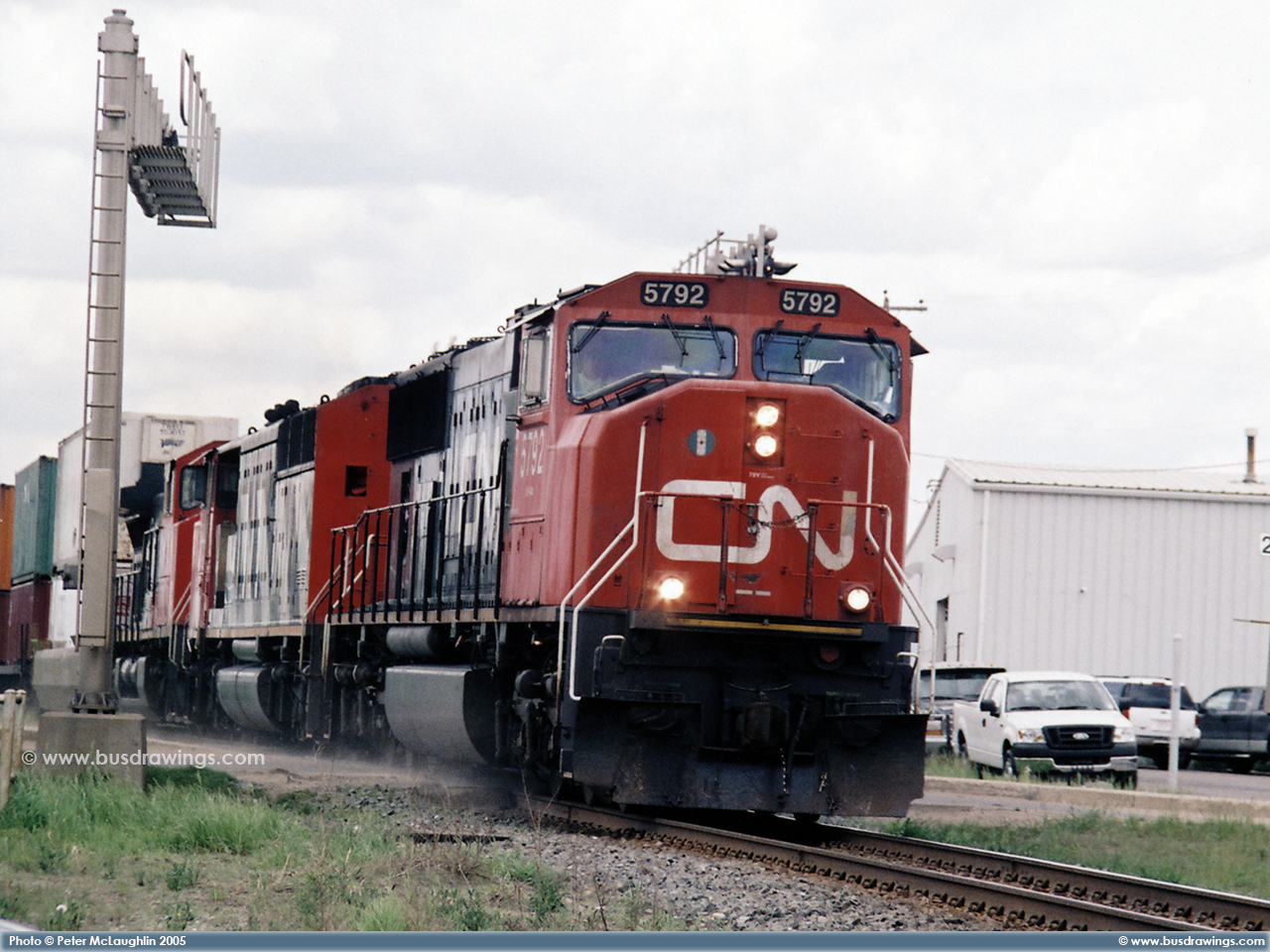 #5792 is seen leading a consist north out of the Sarcee Yard in S.E. Calgary on the Three Hills Subdivision at Mile 123.06 with #'s 5449 2508 trailing behind in September of 2005. Exact date unknown. Photo captured by Peter McLaughlin. |